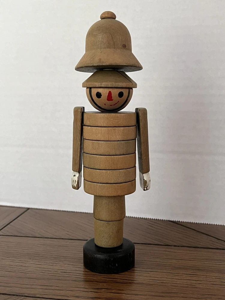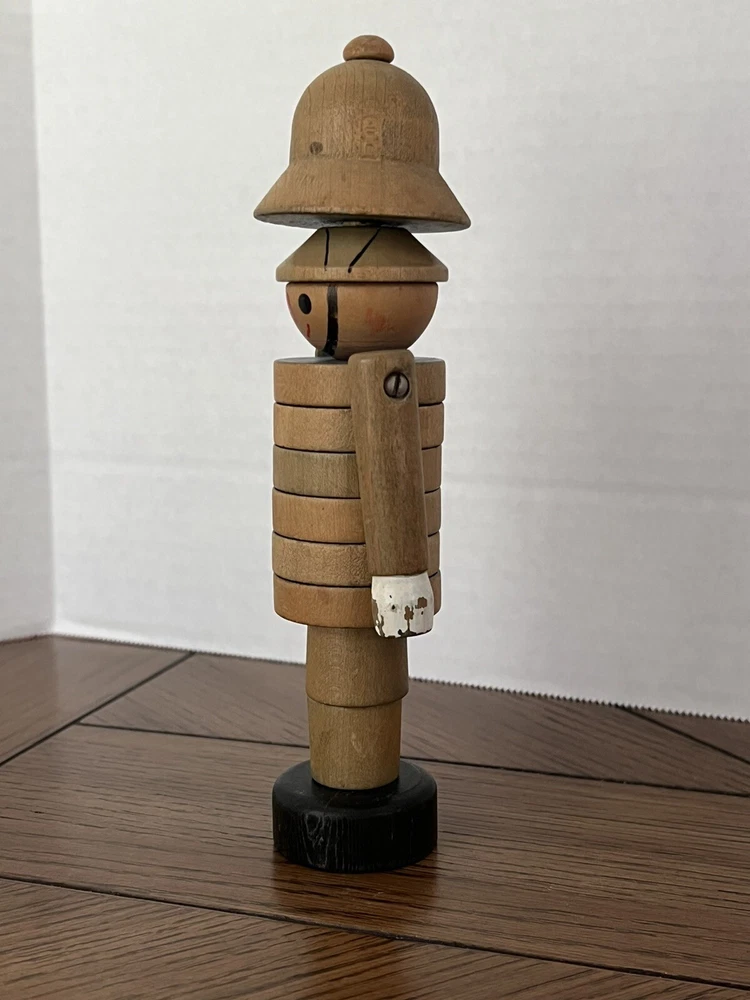 Vintage Czechoslovakia Wood Stacking Toy Policeman - “Bobby” 7.5” tall x 1 5/8” at base