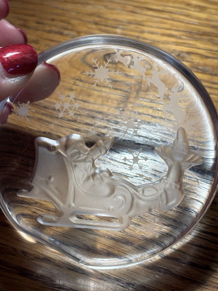 Vintage Danbury Mint Lead Crystal Paperweight Christmas Santa & Reindeer 1983