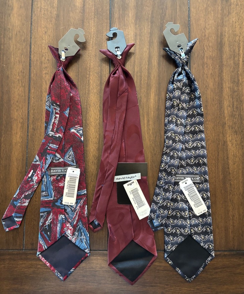 Color: Multicolor Fabric Type: Polyester Character: Shapes Accents: Logo Brand: David Taylor Department: Men Type: Tie Theme: Abstract Item Width: Wide Item Length: 18 Inches Attachment Type: Clip-On Material: Polyester Country/Region of Manufacture: Unknown Pattern: Geometric Style: Designer