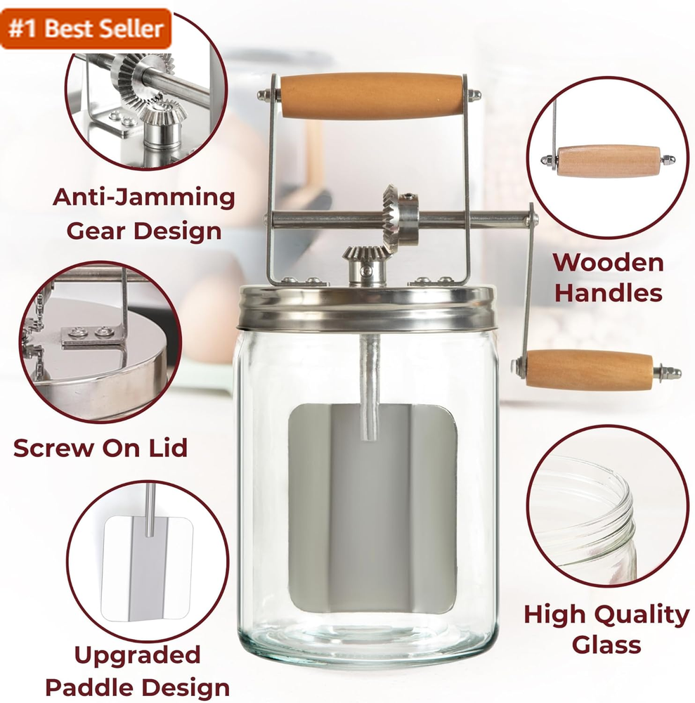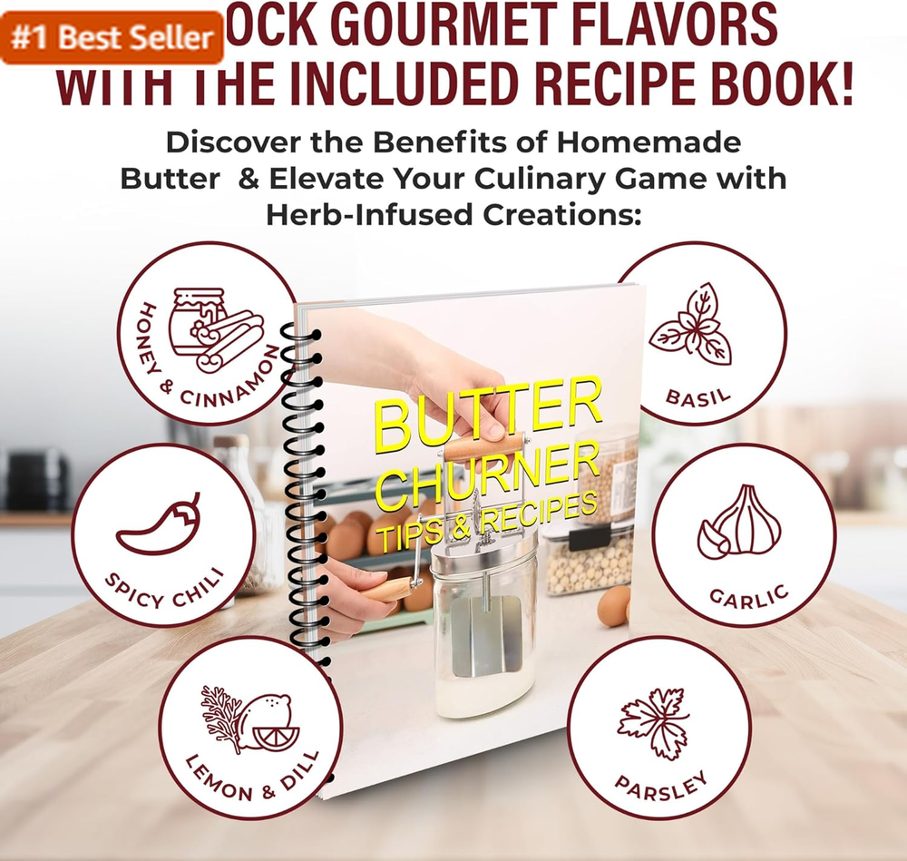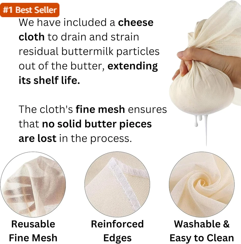 Dazey Butter Churner - Cheese Cloth, Butter Paddles, Recipe Book INCLUDED- Hand Crank Butter Churn- Manual Butter Maker- Create Delicious Homemade Butter with Your Own Hand Crank Dazey Churner Create Your Own Homemade Butter: With just one simple ingredient, heavy whipping cream, bring back the rustic and old fashioned taste of real butter. So easy to use, adults and kids alike will love churning their own personal batches of delicious, slow churned butter. Exclusive Cheese Cloth Bonus: The only set on Amazon that includes a premium quality Cheese Cloth! Perfect for straining out residual buttermilk, crafting clarified butter, and extending the shelf life of your homemade creations by removing excess moisture. Butter Paddles & Recipe Book Included: The only set on Amazon that includes Beech Wood Butter Paddles for a complete butter-making experience. The Recipe Book includes a selection of homemade butter recipes and a step-by-step instruction guide. Don't forget to use the leftover fresh buttermilk for the tastiest old-fashioned vintage pancakes. Homemade Butter Churner: Allows for complete control during the entire butter making process. From the fat content, herbs, salt and spices. Bring the traditional method of butter making into your kitchen. Add a touch of your own inventive flavors to give your butter the ultimate boost. Perfect Gift for Cooking Lover: Makes a great, thoughtful holiday gift. Bring the vintage dazey butter churn into the 21st century. The set includes a Butter Churner hand crank mason jar, beech wood Butter Paddles, and a Recipe Book with instructions & homemade butter recipes. As an American owned and operated company we stand behind our products and offer an extended brand warranty for your peace of mind. Product Description The video showcases the product in use. The video guides you through product setup. The video compares multiple products. The video shows the product being unpacked. Dazey Butter Churner by The Amish Chef Merchant Video 1 Just Add Cream 2 Turn N Churn 3 Delicious Butter Other Products by The Amish Chef Add to Cart Add to Cart Add to Cart Add to Cart Add to Cart Customer Reviews 4.1 out of 5 stars 283 4.0 out of 5 stars 833 3.9 out of 5 stars 159 4.5 out of 5 stars 185 4.7 out of 5 stars 163 Price $49.95 $ 49 . 95 $59.95 $ 59 . 95 $59.95 $ 59 . 95 $31.47 $ 31 . 47 $59.95 $ 59 . 95 Make Homemade Butter ✔ ✔ ✔ ✘ ✘ Make Homemade Sourdough Bread ✘ ✘ ✘ ✔ ✔ Includes Bread Basket(s) ✘ ✘ ✘ ✔ ✔ Includes Recipe Book ✔ ✔ ✔ ✔ ✔ Complete PRO Set ✘ ✔ ✔ ✔ ✔ Item model number Butter Churner Cheese Cloth Global Trade Identification Number 00644625066692 Closure Material Wood Color Clear Pattern Solid Brand Roman Ventures Material Glass Item Weight 1.17 Kilograms Shape Round With Lid Yes Material Type Free Wooden Lid (Closure Material), Other Materials Not Specified Finish Type Polished Package Dimensions 10.39 x 7.95 x 5.04 inches Product Care Instructions Hand Wash Only Manufacturer Roman Ventures Shipping Fast shipping is very important for us. Our standard US shipping service is FREE. Your order will be shipped within 2-3 business days upon full payment received. Your order will be delivered within 2-3 business days after the handling time. We only ship to the confirmed PayPal address. We reserve the right to cancel any order for any reason at any time. We are not responsible for undeliverable addresses. Returns and payment We offer a 30 days return policy from checkout winning date. We allow only PayPal as payment method FeedBack Your feedback very important to us, after you get your package and you are satisfied with our service please leave us positive feedback If you have any problem with your order / any questions please before leave any type of feedback For any questions, using eBay contact system Please visit our eBay store to check out other items for sale! Thank you for shopping at our store.