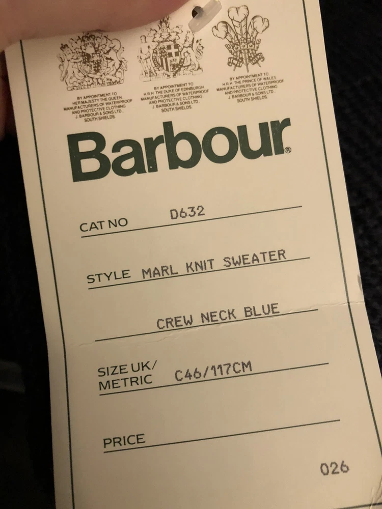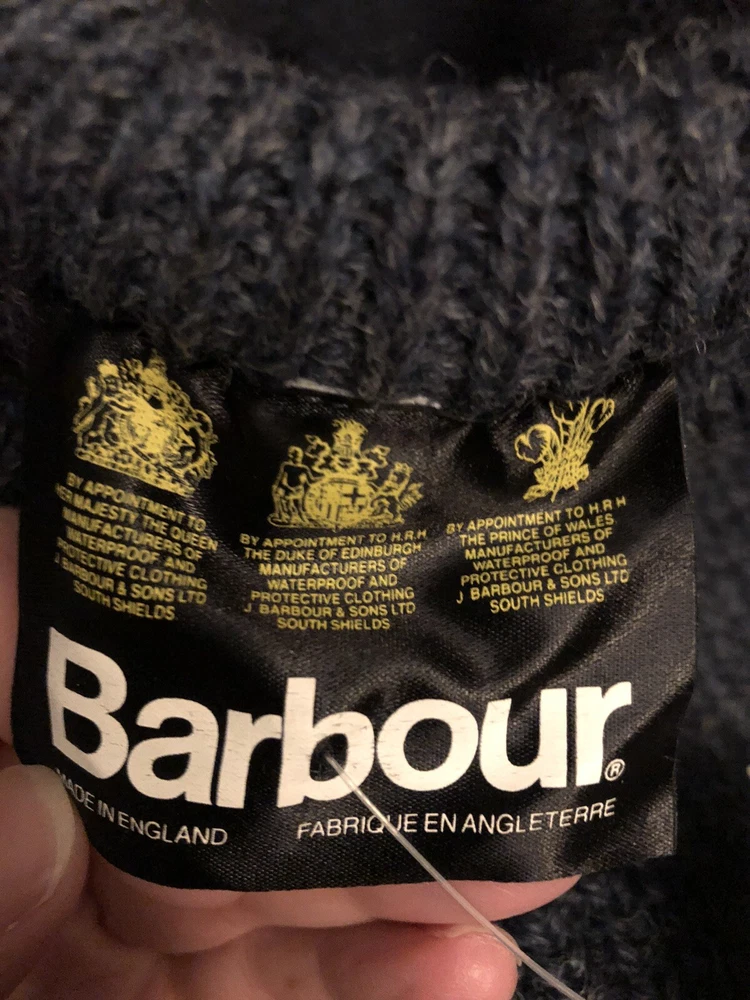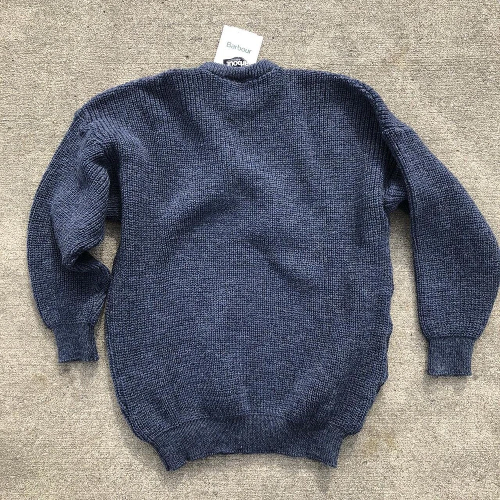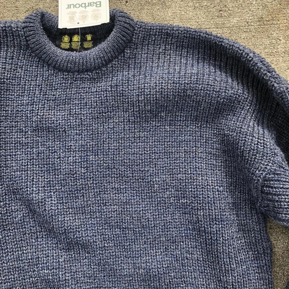 Vintage 1990s Barbour wool knit blue crewneck sweater Deadstock with tags No itch Perfect condition with tags Reads size 46 Measurements taken laying flat Pit to pit 24 Length 29