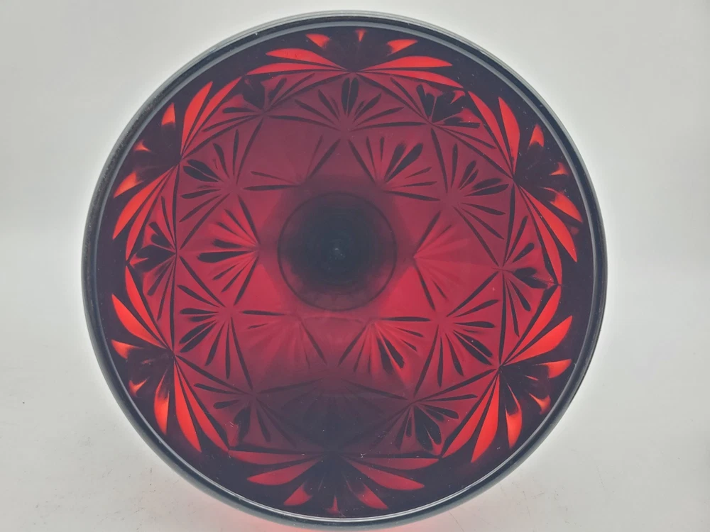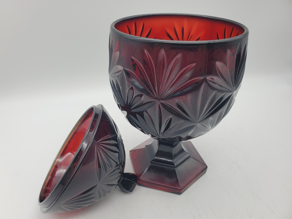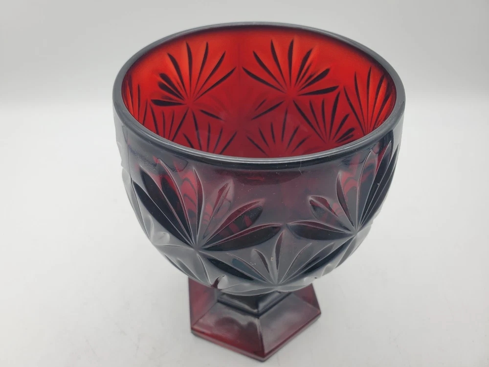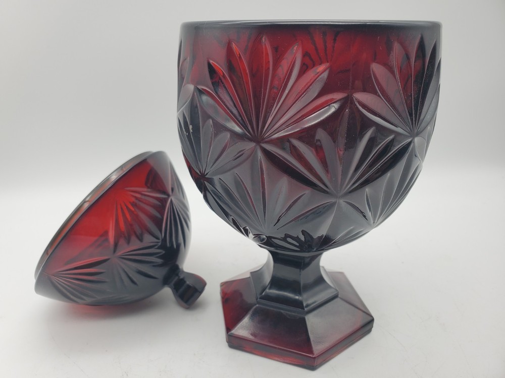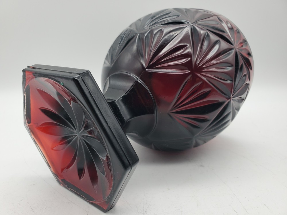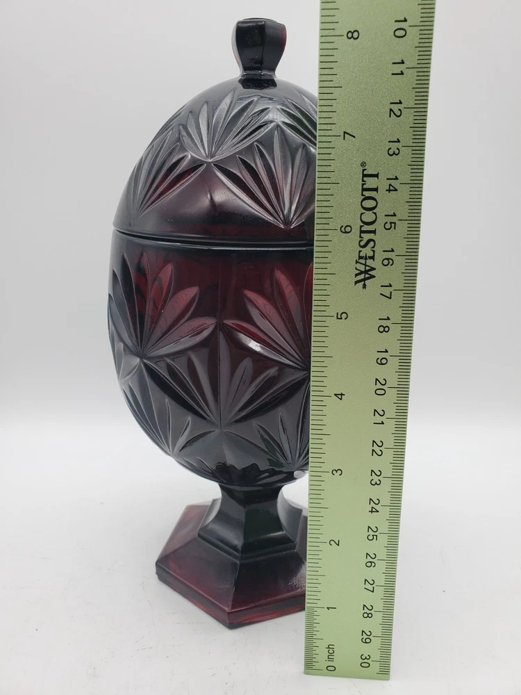 Vintage Deep Ruby Red Glass Egg Pedestal Candy Dish 8.75", Luminarc, France