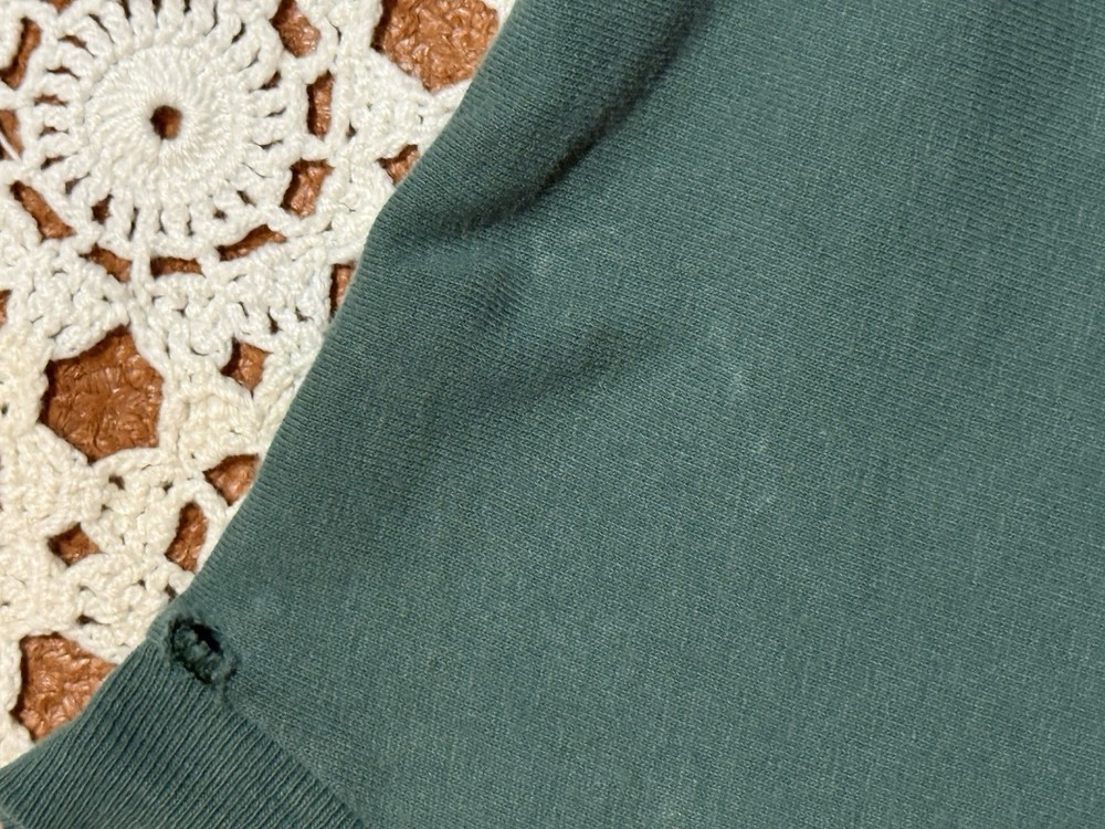 Item is used it has wear, fade, discoloration, spots, piling, frays, small holes or other signs of use/imperfections. Item is tagged size large, see measurements for sizing due to possible size variations in brands or shrinkage. Sold AS IS No returns.