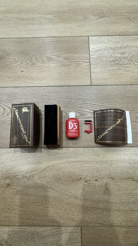 Experience true audiophile care with this vintage Discwasher Cleaning System – an iconic record maintenance kit for your vinyl collection. ✅ Includes: • Genuine Discwasher wood-handle velvet brush • Original D3 Cleaning Fluid (partially full) • Mini stylus brush • Instruction manual • All packed in original retro box 🪵 Beautiful walnut wood finish 🇺🇸 Made in USA — Columbia, Missouri 📀 Ideal for vintage collectors, DJs, or analog lovers 💎 Excellent vintage condition (see photos) 🎁 A rare find and a piece of audio history — perfect gift for a vinyl lover or turntable enthusiast!