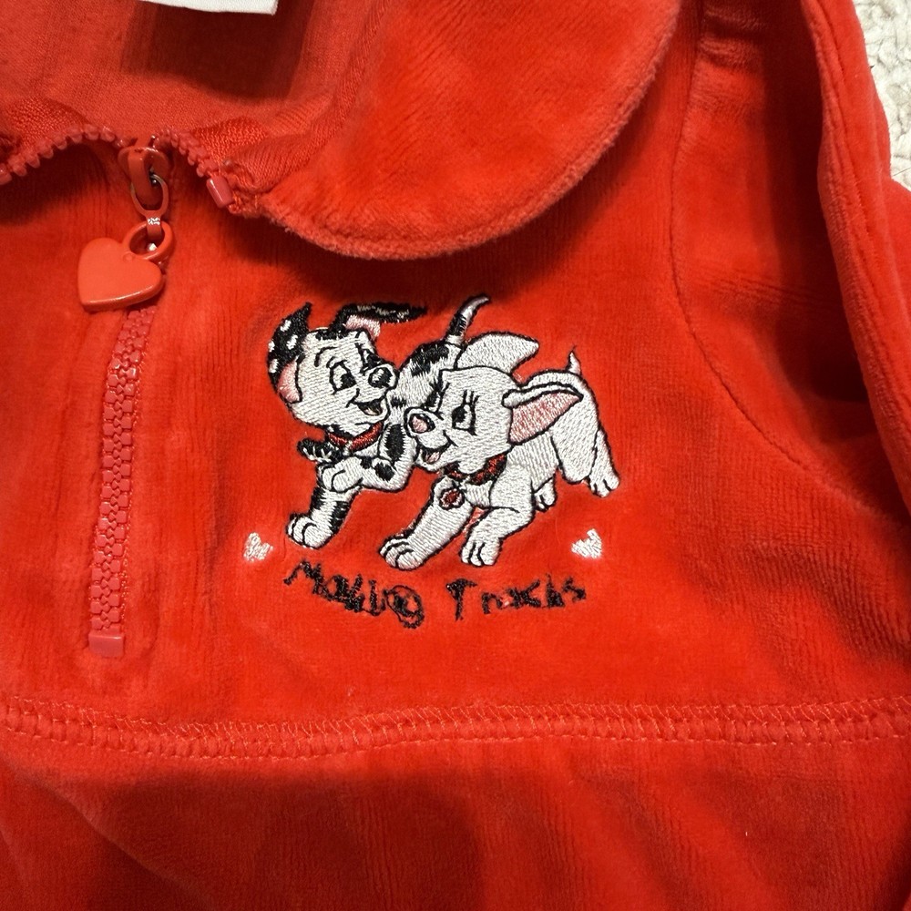 This Vintage Disney 102 Dalmatians Kid’s Top in velvet longsleeve is a charming addition to any 18-month-old's wardrobe. The solid red color and classic Disney character family make it a perfect choice for casual occasions during the fall and spring seasons. With its regular fit and machine washable care, it offers both comfort and convenience for little ones who love the iconic Dalmatian characters from the beloved Disney film.
