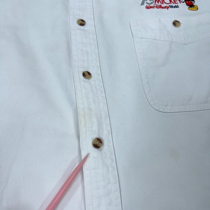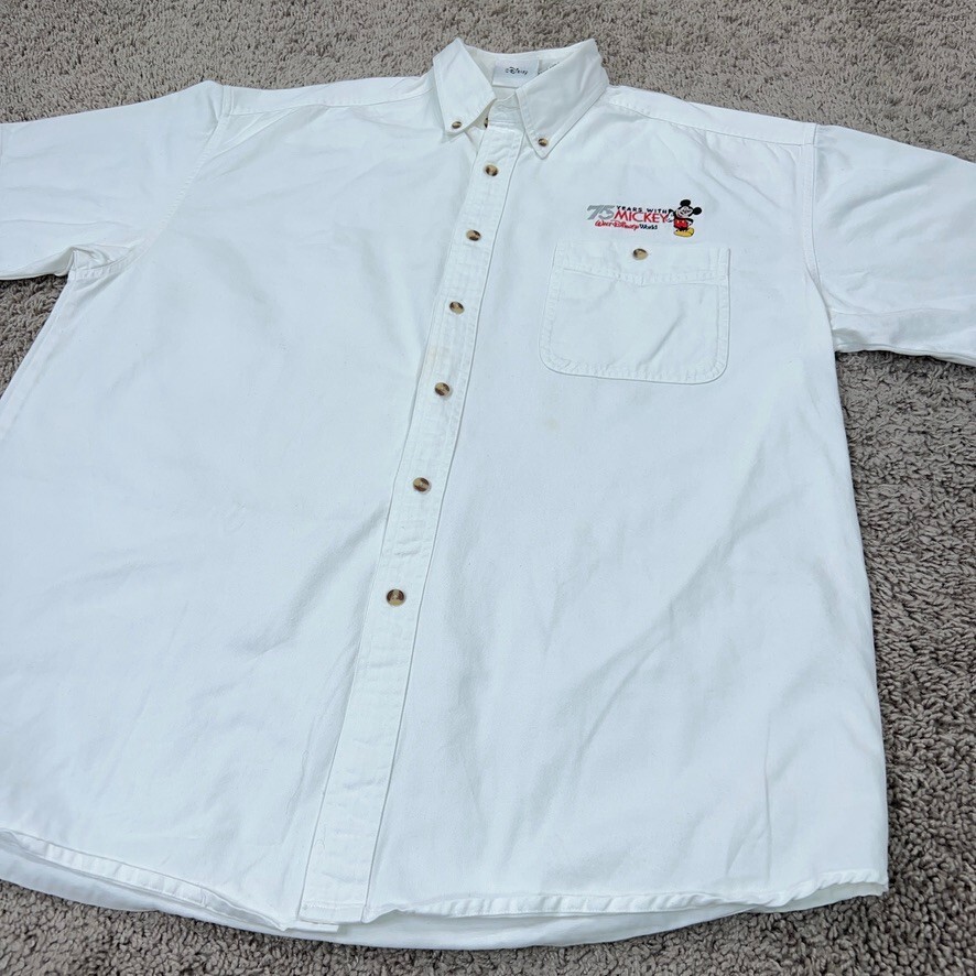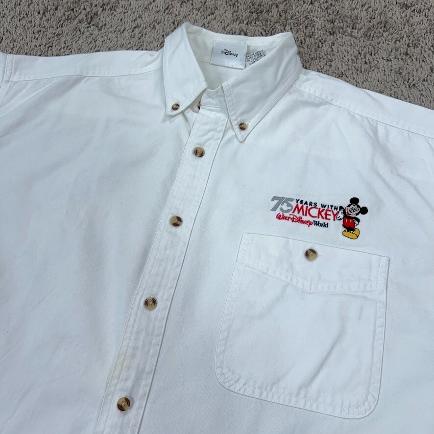 Vintage Walt Disney World Shirt Adult XL White 75 Years Mickey Mouse Anniversary Condition: - Spot on front. - Overall in good used condition. - No holes. - Nice embroidery. Size: - Adult XL . Measurements: - Previous washings may change the sizing written on the tag. - Please refer to the photos above for all measurements. - Please compare our measurements to that of one of your favorite garments. - Please note, item measurements are approximate . All items are bagged and sealed after being photographed, then stored in a smoke free environment to ensure the item is exactly the same as when photographed. I carefully package and ship daily. Feel free to contact me with any questions. All items have been washed per eBay standards & policies.