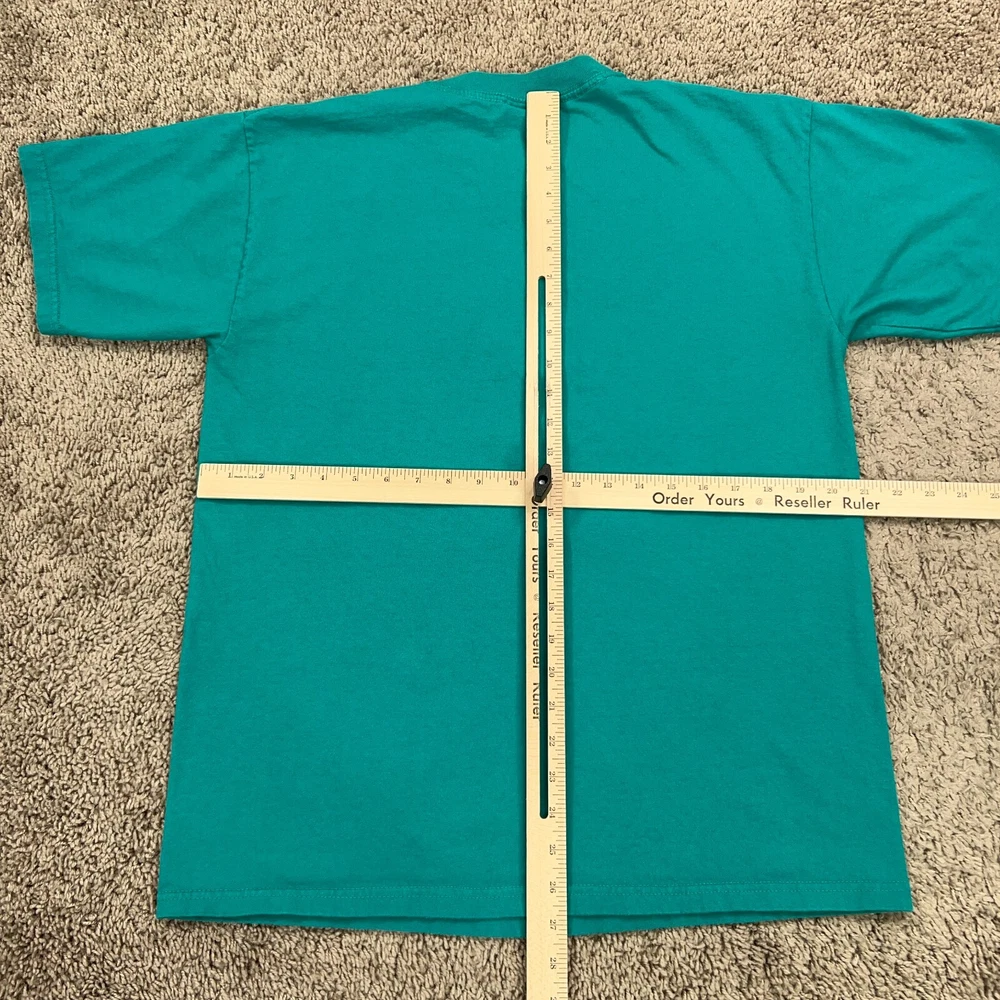 Vintage Walt Disney World Shirt Adult Medium Green Blue Embossed Mickey Mouse Condition: - Discoloration around collar. - Spot on sleeve. - Good used condition. - No rips or holes . - Nice embossed Mickey and lettering. - Nice color, looks like a blue/green in my opinion. Size: - Womens medium. Measurements: - Previous washings may change the sizing written on the tag. - Please refer to the photos above for all measurements. - Please compare our measurements to that of one of your favorite garments. - Please note, item measurements are approximate . All items are bagged and sealed after being photographed, then stored in a smoke free environment to ensure the item is exactly the same as when photographed. I always carefully package and ship ASAP. Feel free to contact me with any questions. All items have been washed per eBay standards & policies.