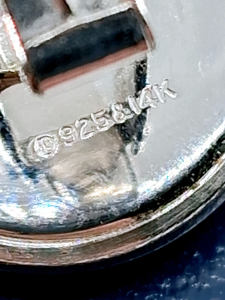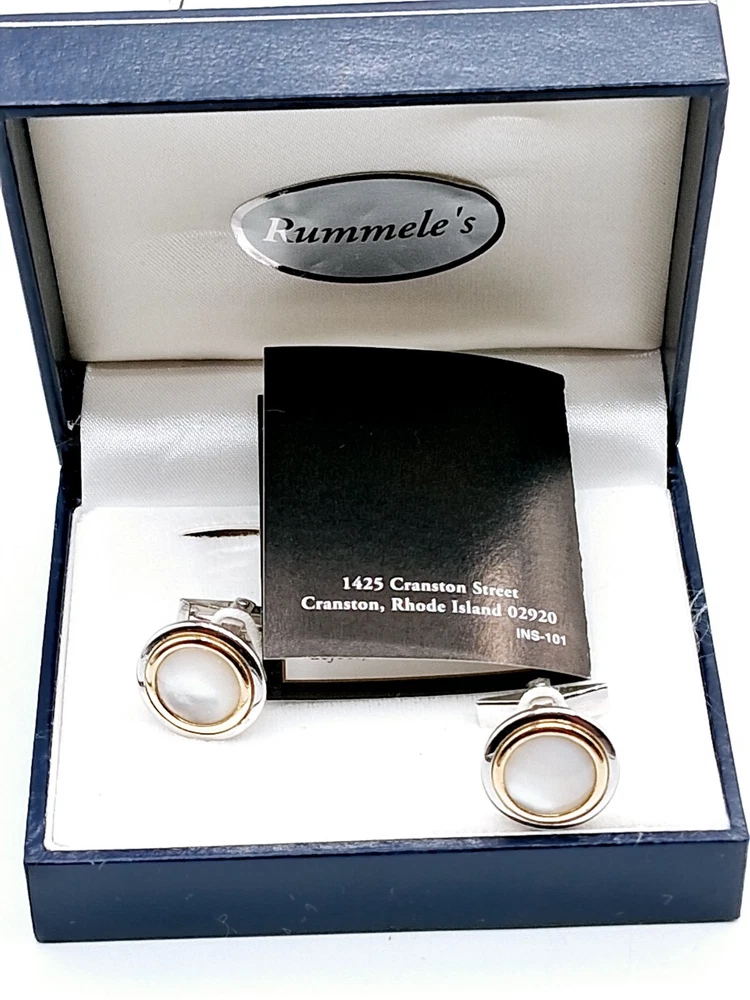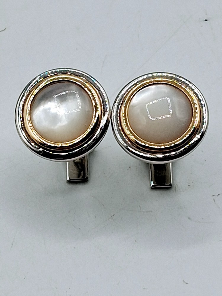 The Vintage Dolan Bullock D.B. Sterling & 14K Oval Mother Of Pearl Cufflinks are a sophisticated and timeless accessory for men. Made with sterling silver and 14K gold, they feature a stunning oval-shaped mother of pearl accent that adds a touch of luxury to any outfit. Signed by the renowned brand Dolan Bullock, these cufflinks are a vintage piece that exudes elegance and classic style. The white color of the mother of pearl and yellow accents give these cufflinks a unique and stylish look that is sure to make a statement. Please view the photos for the best condition description. I do combine shipping, and thanks for visiting my store, I certainly appreciate ya!! 👽🦩🛸
