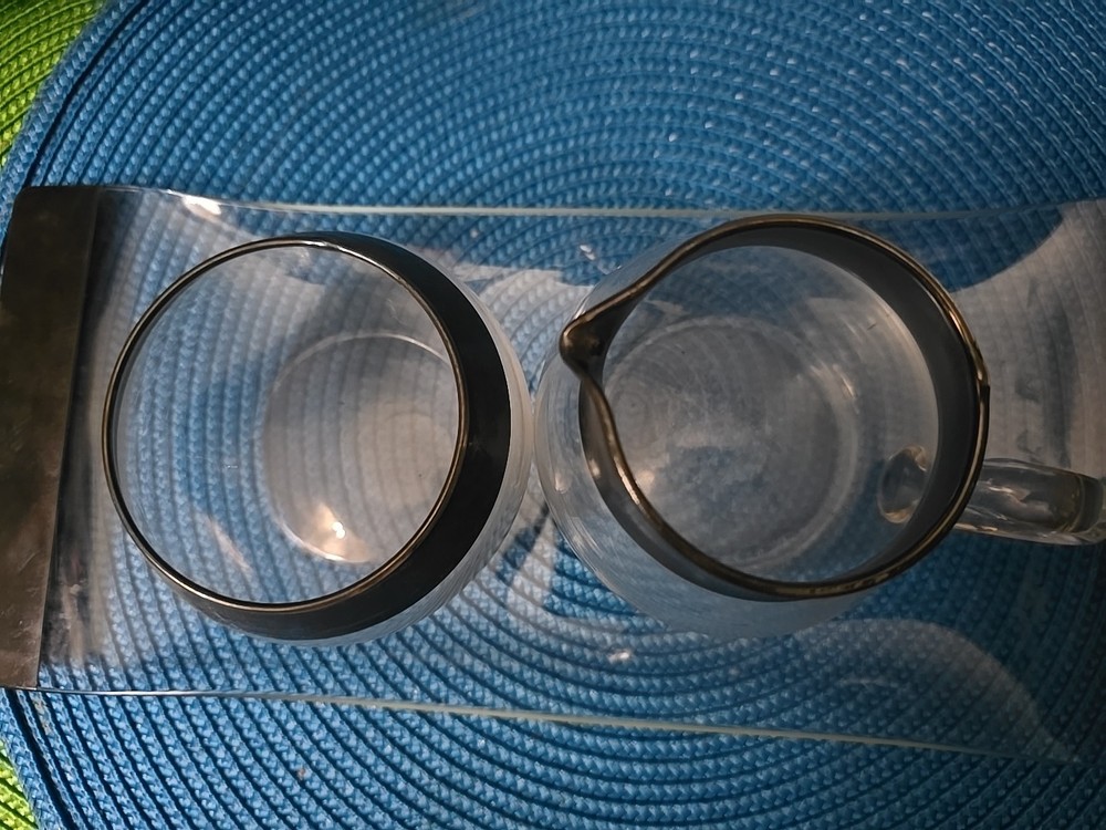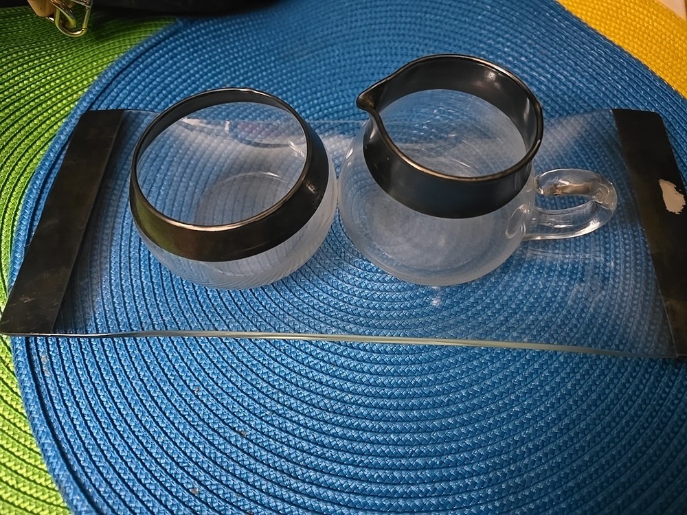 Vintage Dorothy Thorpe Bar Tray Suger Creamer MCM sterling Silver Rim Set.... Condition is Used. Shipped with USPS Ground Advantage.