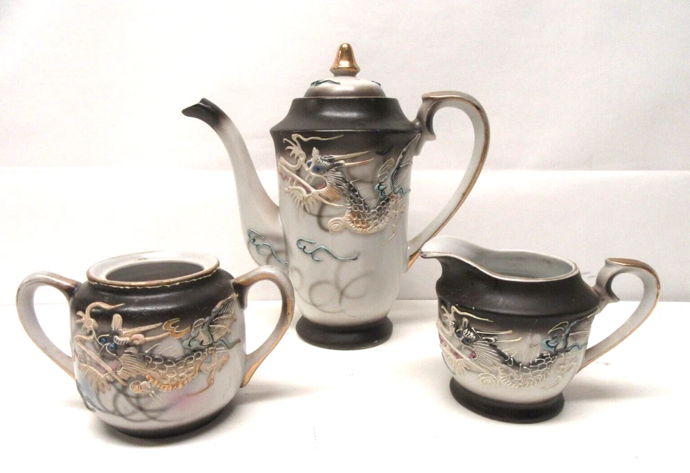Vintage Dragon Ware Moriage 10 Pc Tea Set!! Stunning Dragons!! 10 Piece set includes Teapot w/Lid 7 1/2" Tall 3 Cups 3 Saucers 1 Creamer 1 Sugar Bowl (no lid) Plus Extra--We will include FREE 1 cup w/hairline crack & FREE 1 saucer w/tiny chip. (no pics of free items, we want no confusion.) Will be professionally packed, safe & secure!! Hi there!! WE'RE NOT NEW!! We have hundreds of items like these on our "sister" eBay site Kathleeszpar_0 or for Comic Books on eBay edwszp-0 or for Playboy Magazines on eBay szp-79. **Check out our feedbacks at any of our eBay sites/stores!! We're here to please!! **We combine shipping costs to save you $!! and refund the savings for multiple items purchased at the same time!! Here's how we do it...buy your items, including shipping, and shortly after, we refund you the excess $$$!! We do it this way because we sell items of many different sizes and weights. ~~Our customers love saving $$$!!~~