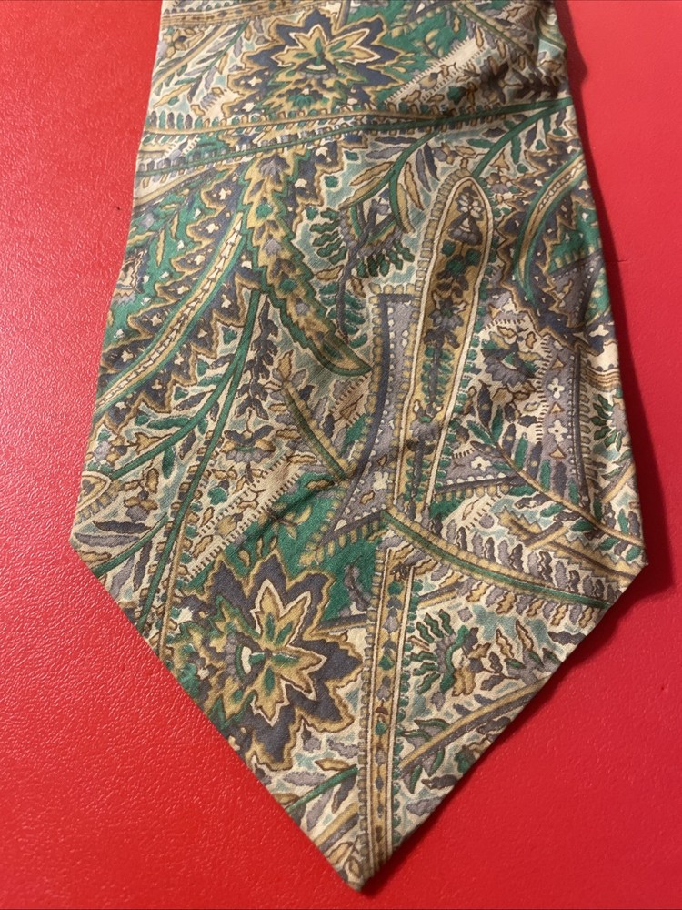 Add a touch of vintage charm to your wardrobe with this Liberty of London tie. Featuring a colorful paisley pattern, this 100% cotton tie is perfect for any mod or disco-inspired outfit. The wide width adds a stylish touch to any outfit, while the designer style and multicolor pattern make it a standout accessory. This tie is perfect for any vintage-loving man, and it's made in the United States to boot. Whether you're dressing up for a special occasion or just adding some flair to your everyday look, this Liberty of London tie is a must-have. So why wait? Add it to your collection today!