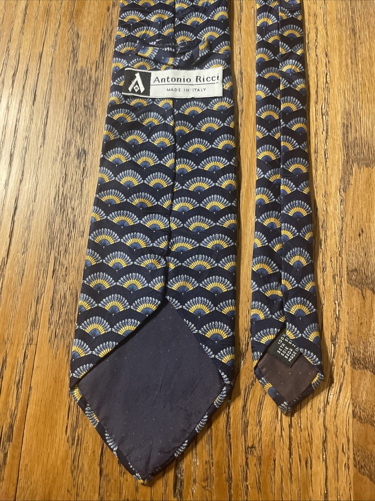 Style: Designer Material: 100% Silk Fabric Type: Satin Brand: Antonio Ricci Type: Tie Vintage: Yes Department: Men Color: Multicolor Item Width: Classic Country of Origin: Italy Pattern: Geometric Theme: Preppy