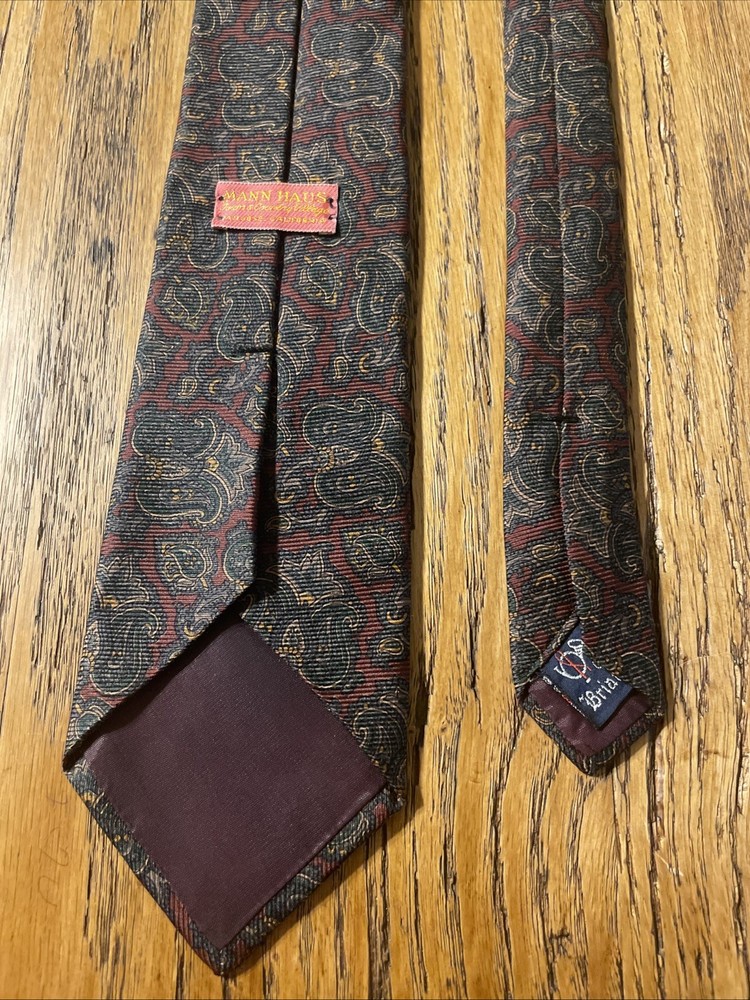 Elevate your wardrobe with the classic charm of a vintage Briar for Mann Haus tie. Crafted from 100% silk, this men's necktie features a timeless paisley pattern in a vibrant multicolor palette, perfect for adding a dash of preppy elegance to any outfit. With its classic width, this tie is versatile for both professional and formal occasions. Made in the United Kingdom, it reflects a high standard of craftsmanship. Whether you're dressing up for an event or adding to your collection, this piece is a testament to timeless style and quality.