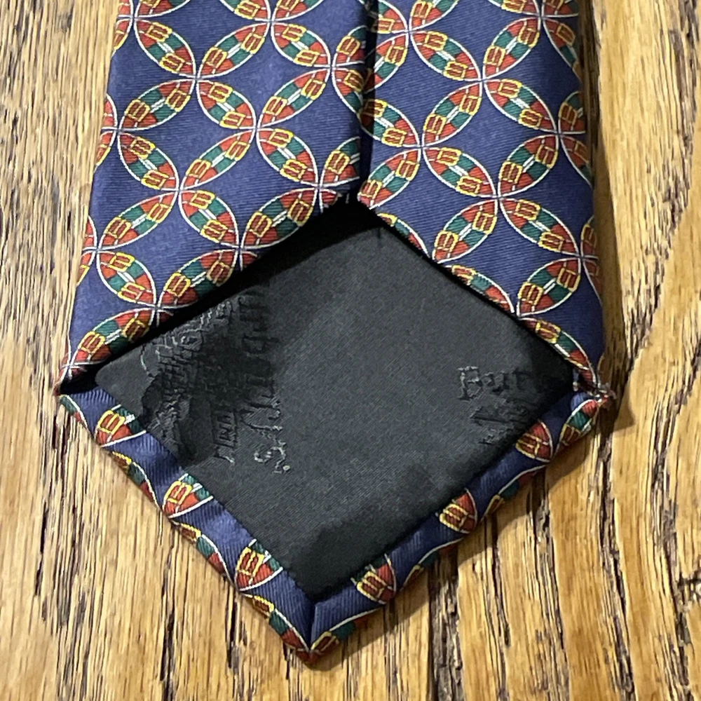 Vintage EUC Burberry Silk Tie Buckles Geometric Made In England UK Necktie