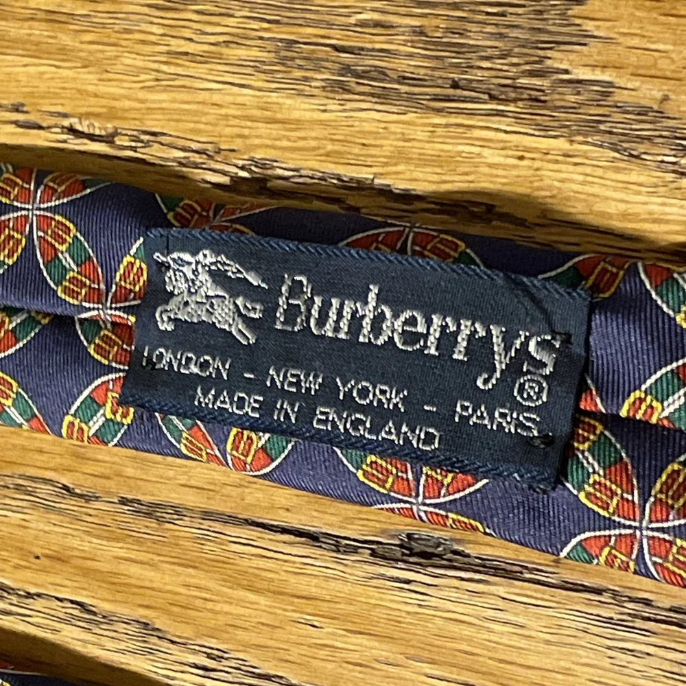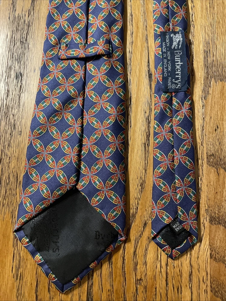 Fabric Type: Satin Item Width: Classic Style: Designer Color: Multicolor Theme: Designer Department: Men Country of Origin: United Kingdom Vintage: Yes Pattern: Geometric Material: 100% Silk Type: Tie Accents: Buckle Brand: Burberry