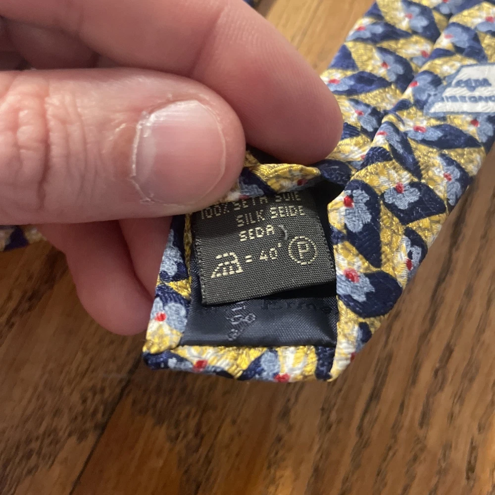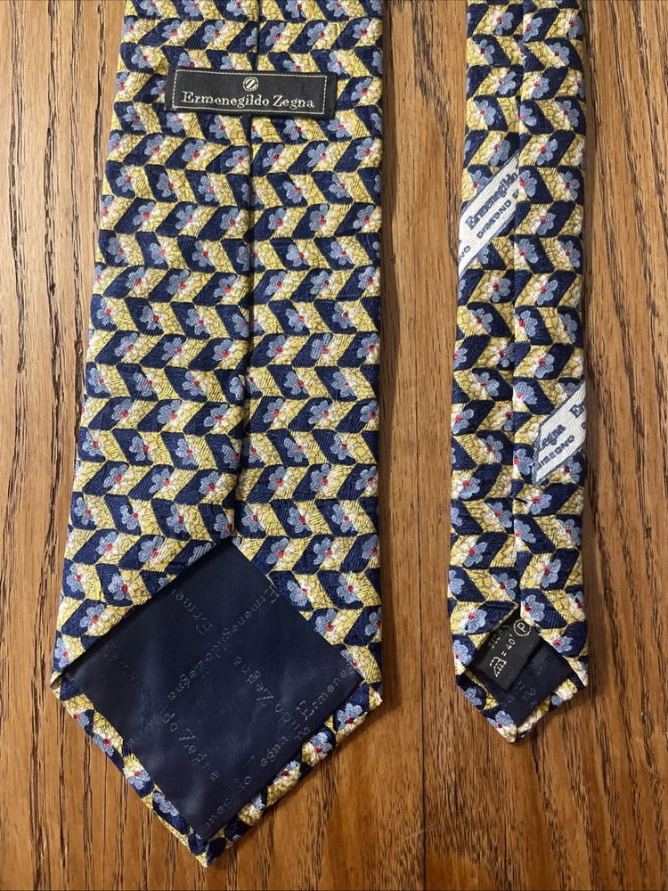 Elevate your attire with the Vintage EUC Ermenegildo Zegna Silk Tiny Floral Tie, a sophisticated choice for the discerning gentleman. Made in Italy from 100% silk, this designer tie features a classic width, ensuring a perfect knot and a smooth drape. Its multicolor floral pattern exudes a preppy charm, making it an ideal accessory for both formal and casual events. The tie’s exceptional quality is a testament to Zegna's reputation for luxury and craftsmanship. Its versatile style seamlessly complements a variety of shirt and suit combinations, allowing for personal expression within a tasteful framework. Whether for business or leisure, this tie adds a touch of elegance to any outfit.