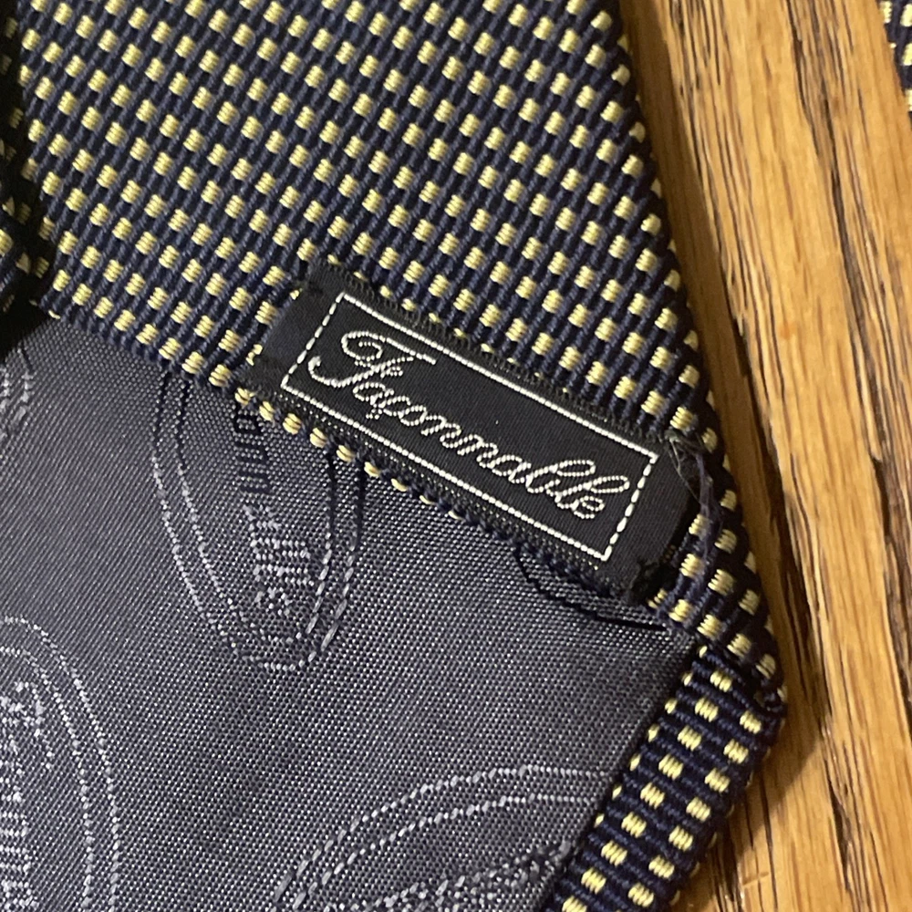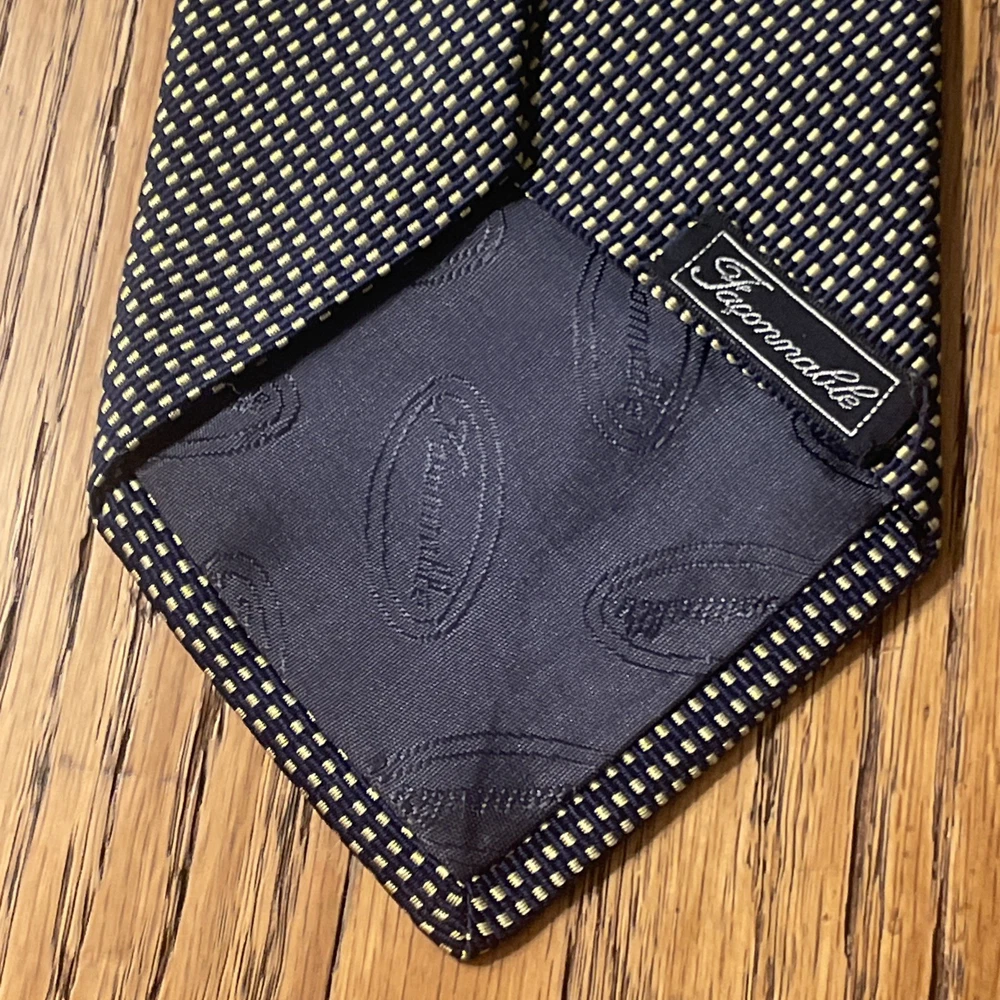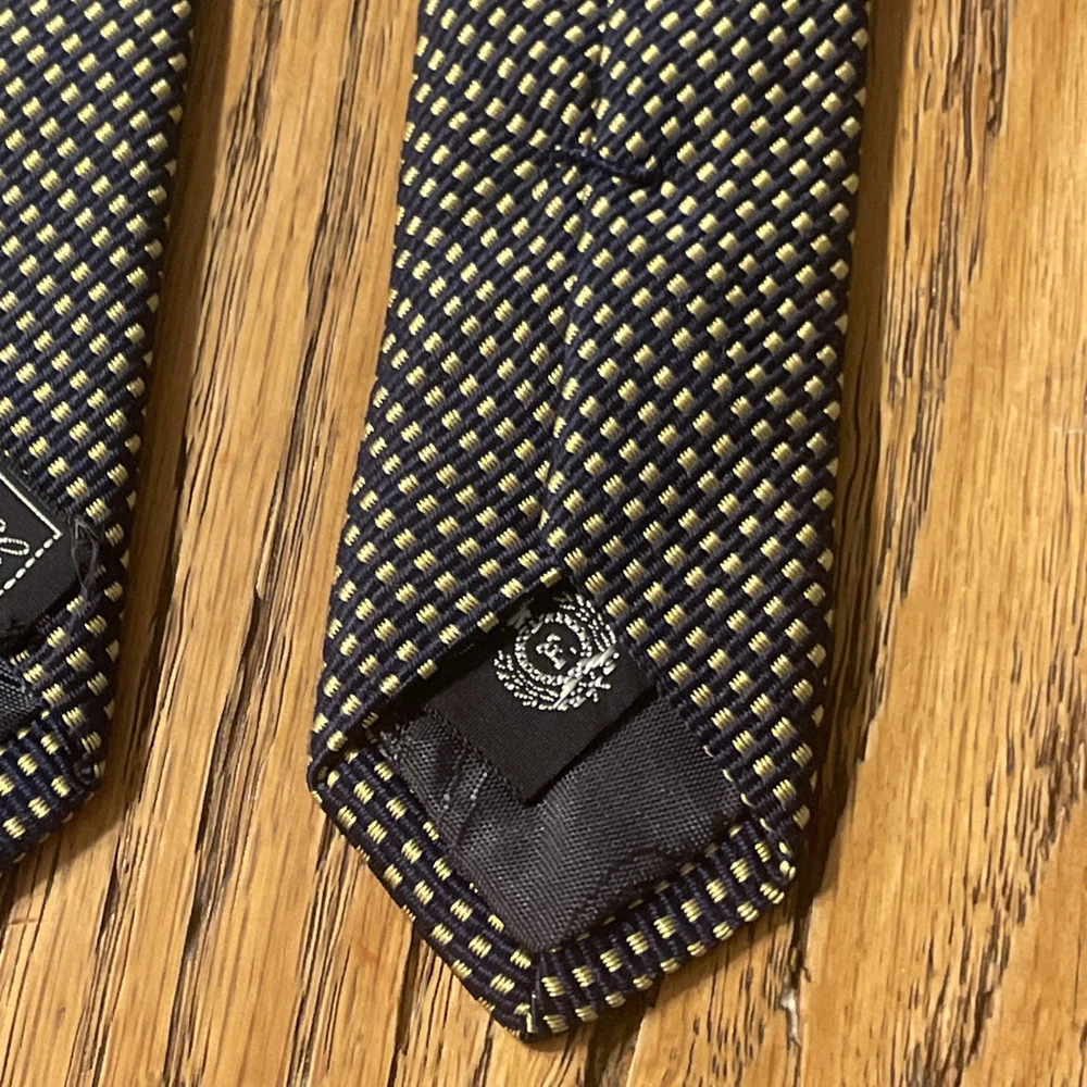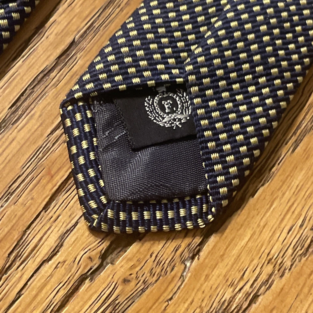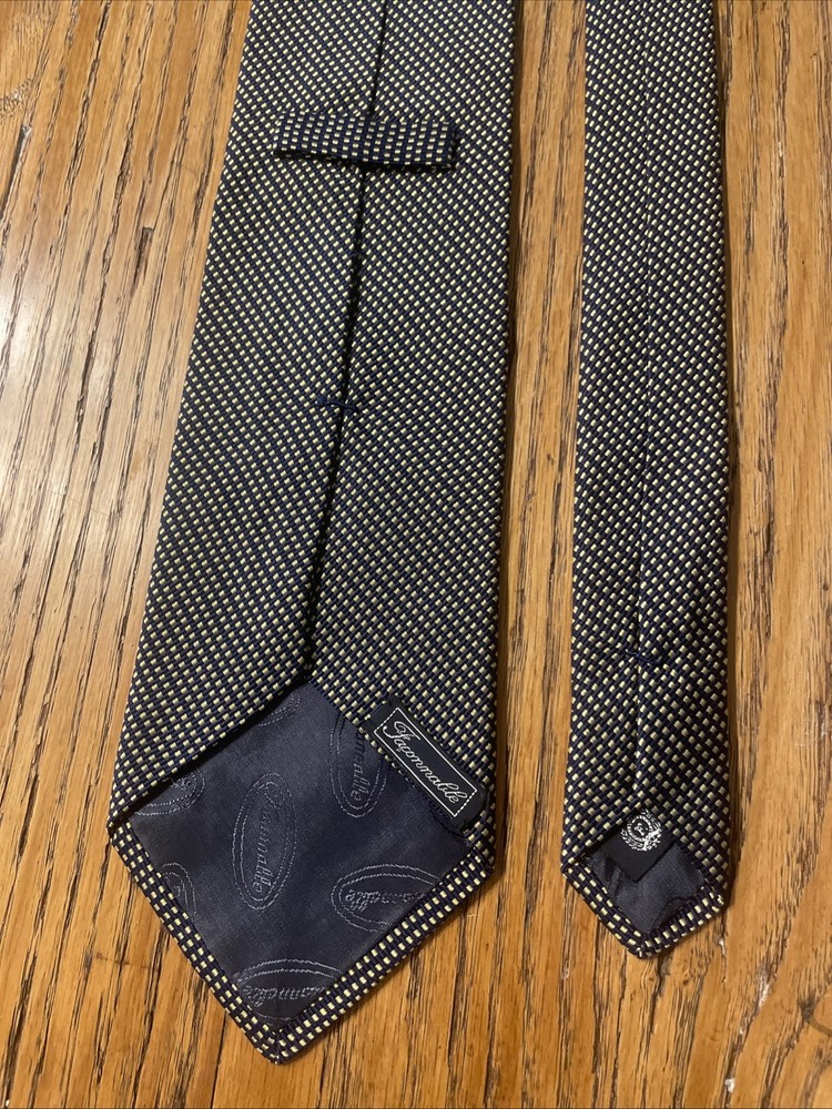 The Vintage EUC Façonnable Silk Tie is a luxurious men's necktie made in France. Made from 100% silk, this designer tie features a fine geometric pattern in a classic multicolor design. The preppy style and vintage appeal make it a sophisticated and timeless accessory for any occasion.