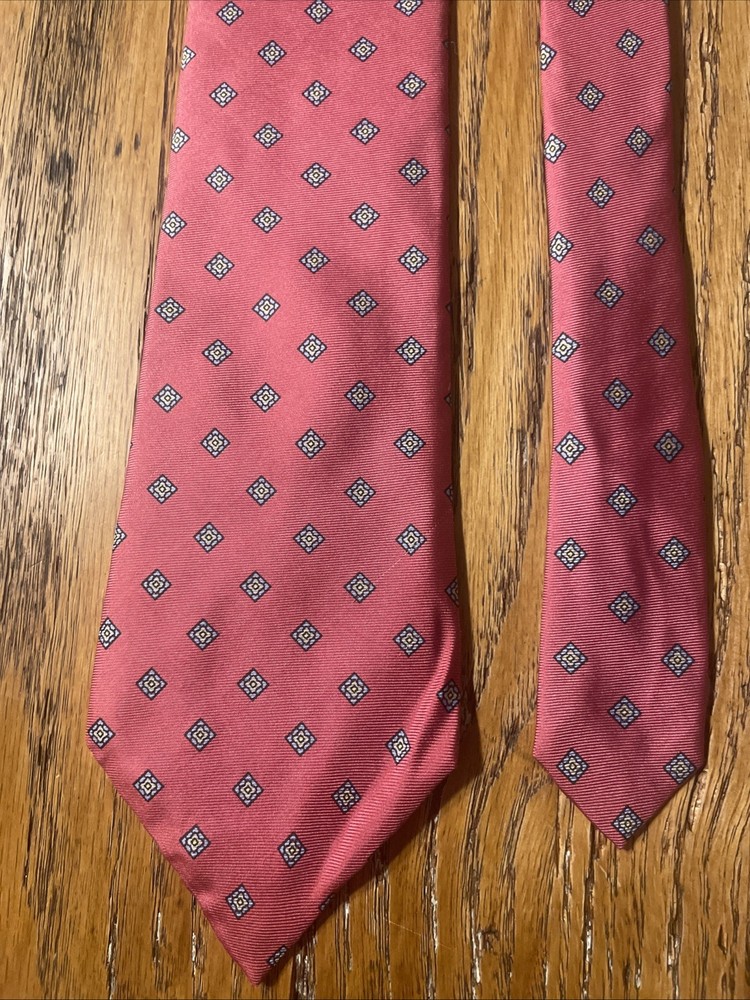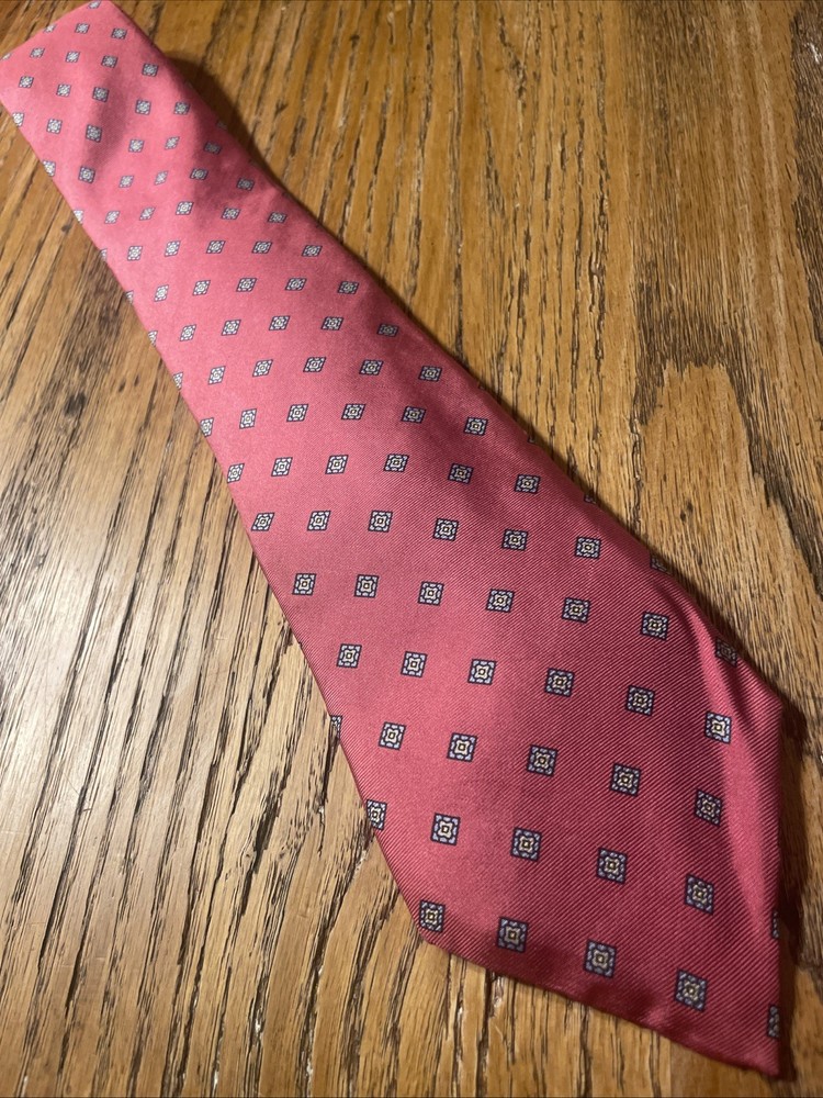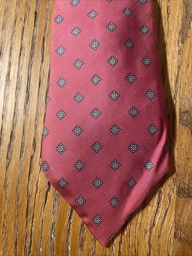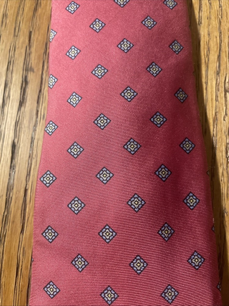 This vintage EUC Geometric Foulard Silk Tie is a stylish and classic accessory for men, perfect for adding a touch of preppy sophistication to any outfit. Made from 100% silk with a woven fabric type, the tie features a geometric pattern in multicolor, making it a versatile and eye-catching piece. The classic width and vintage design set it apart from more modern ties, making it a timeless addition to any man's wardrobe.