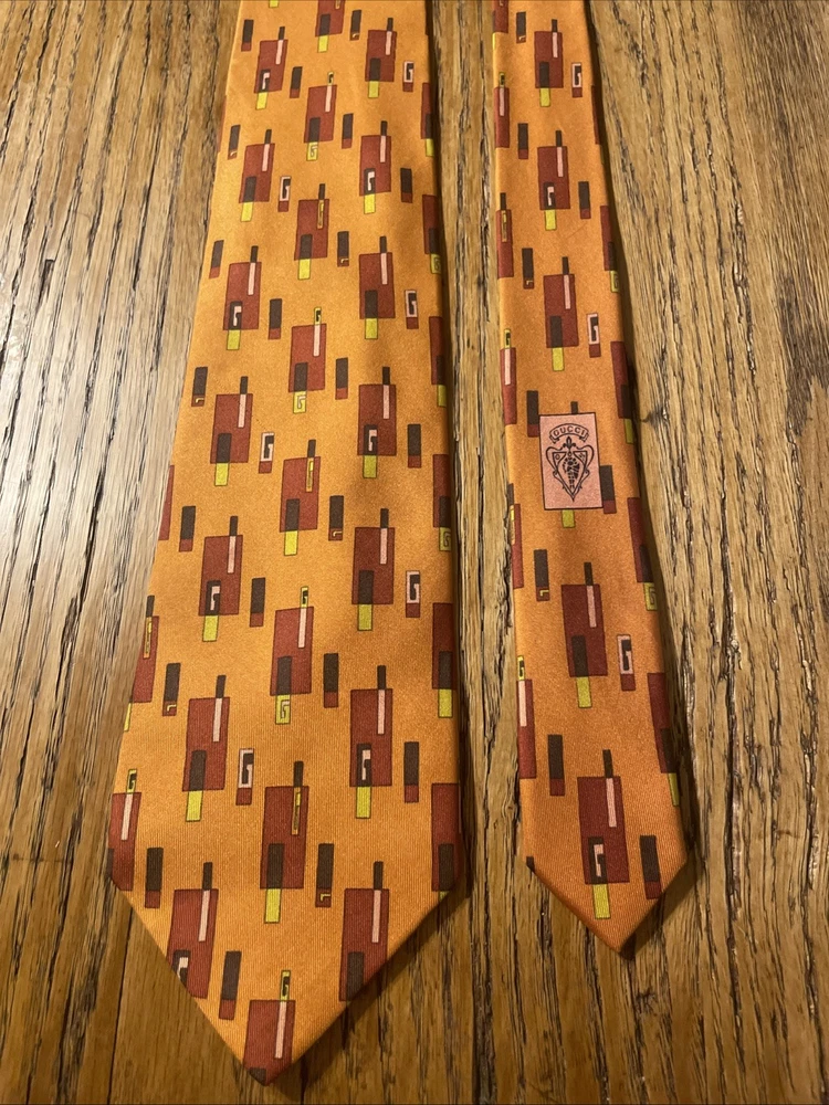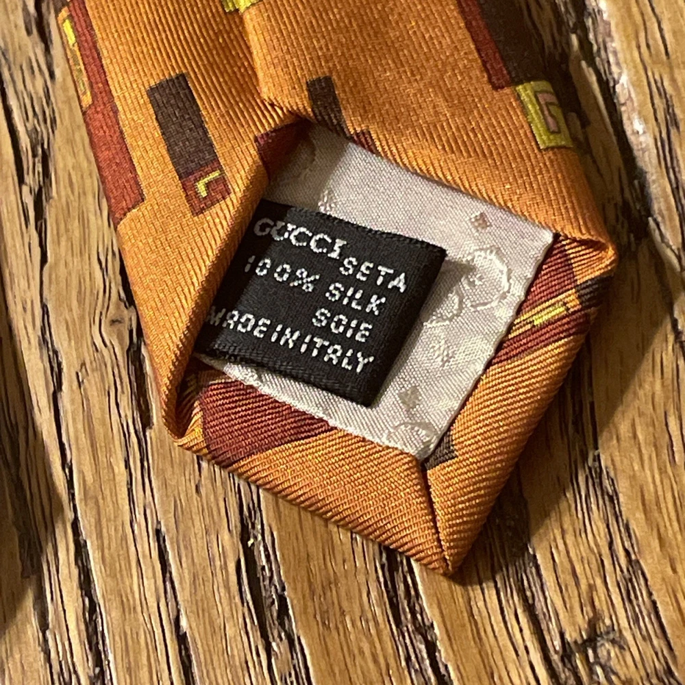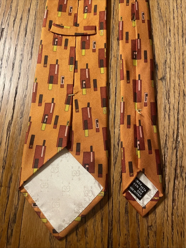 Material: 100% Silk Color: Multicolor Fabric Type: Satin Theme: Designer Department: Men Vintage: Yes Country of Origin: Italy Type: Tie Style: Designer Brand: Gucci Item Width: Classic Character: Pop Pattern: Wild Pop Art G Logo