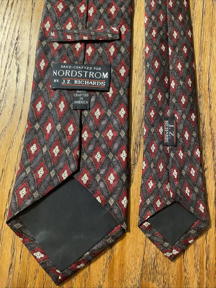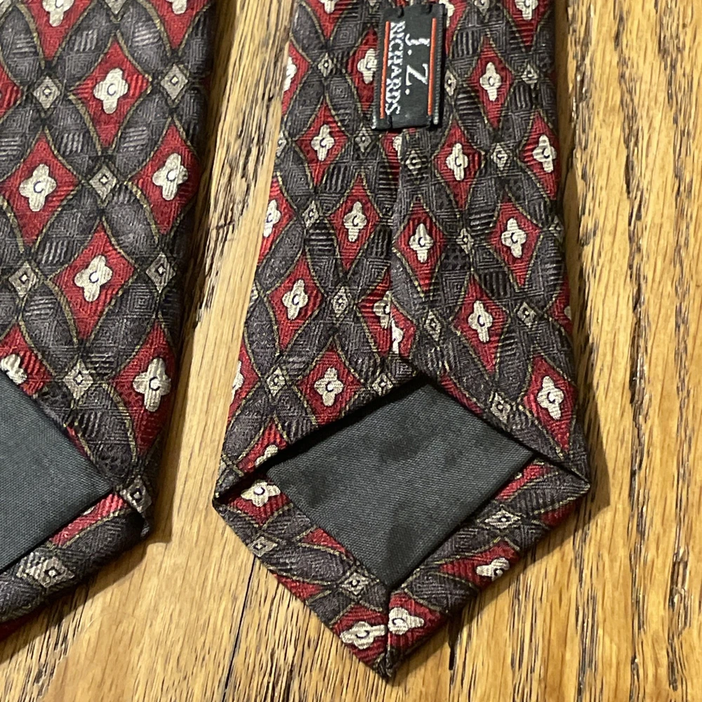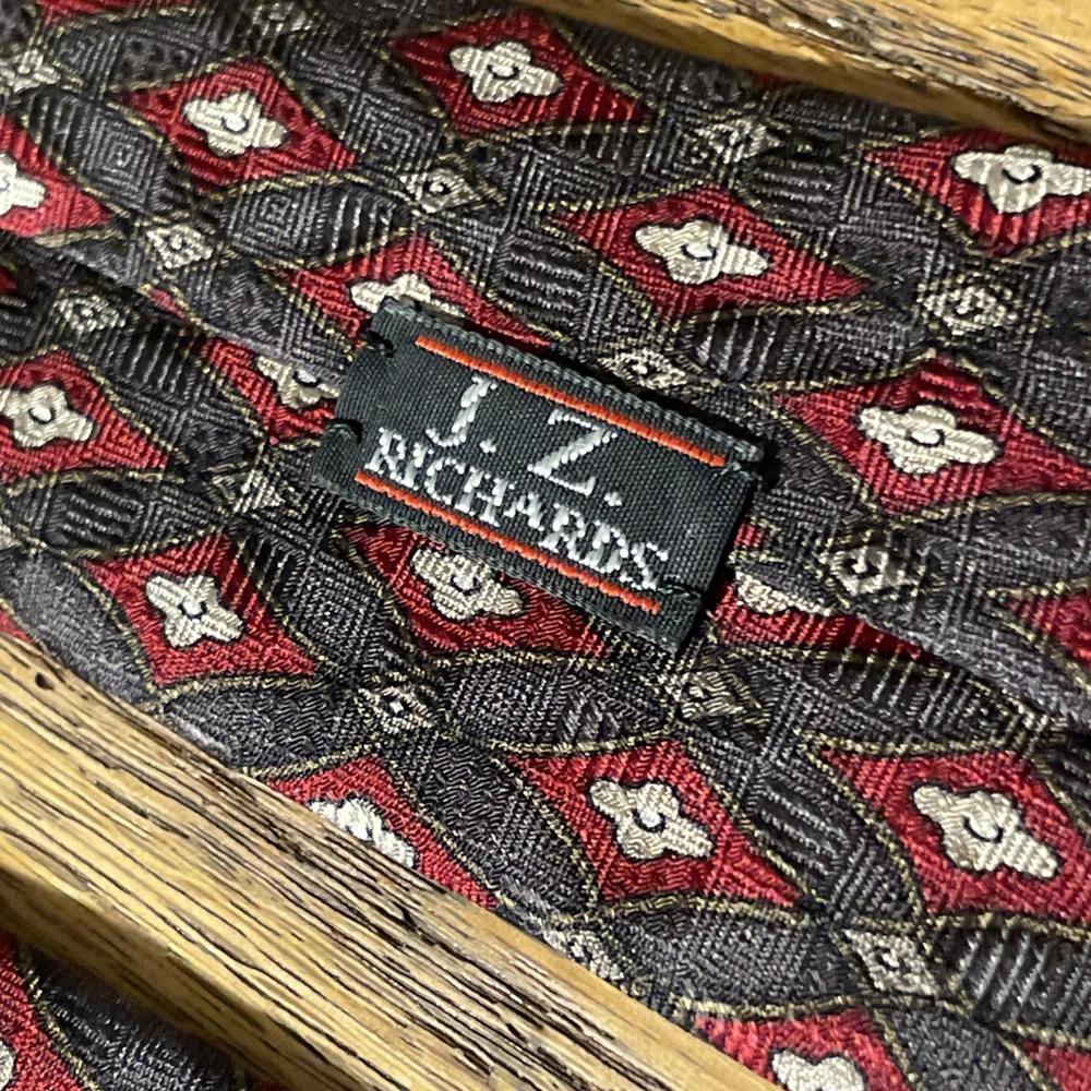 Country of Origin: United States Color: Multicolor Type: Tie Style: Designer Brand: J.Z. Richards Theme: Preppy Vintage: Yes Item Width: Classic Department: Men Pattern: Geometric Fabric Type: Satin Material: 100% Silk