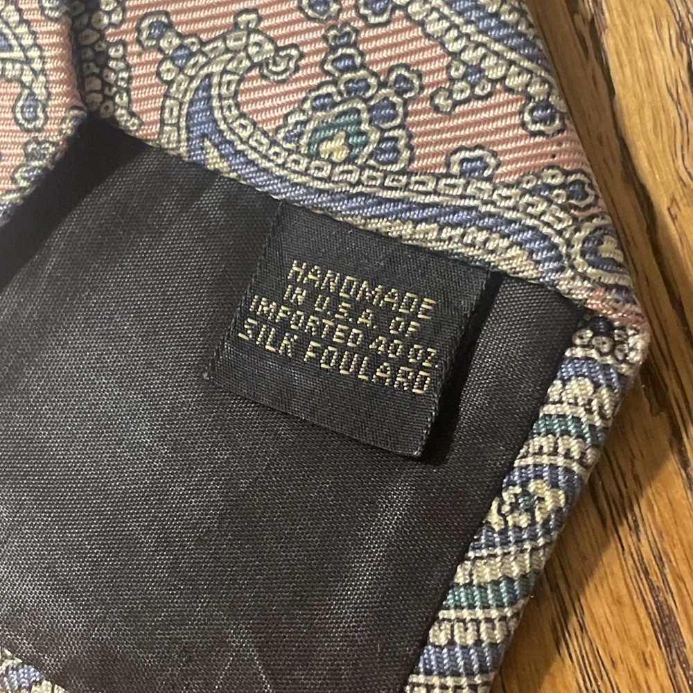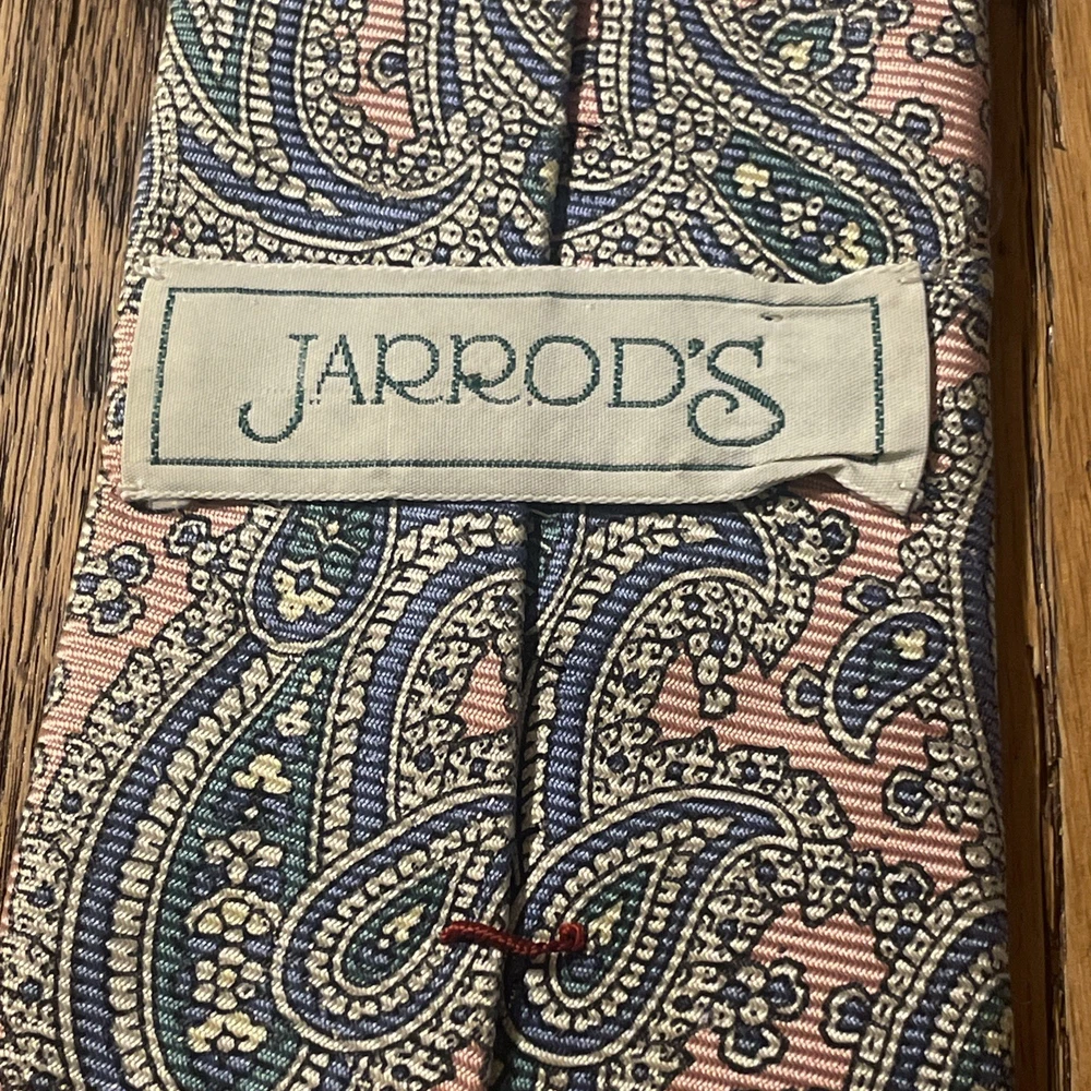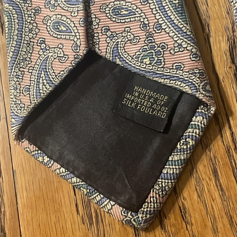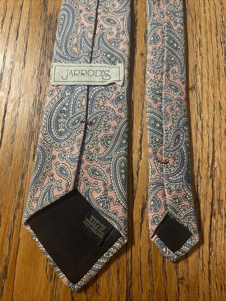 Color: Multicolor Department: Men Vintage: Yes Material: 100% Silk Country of Origin: United States Theme: Preppy, Designer Brand: Jarrod’s Fabric Type: Satin Style: Designer Type: Tie Item Width: Classic Pattern: Paisley