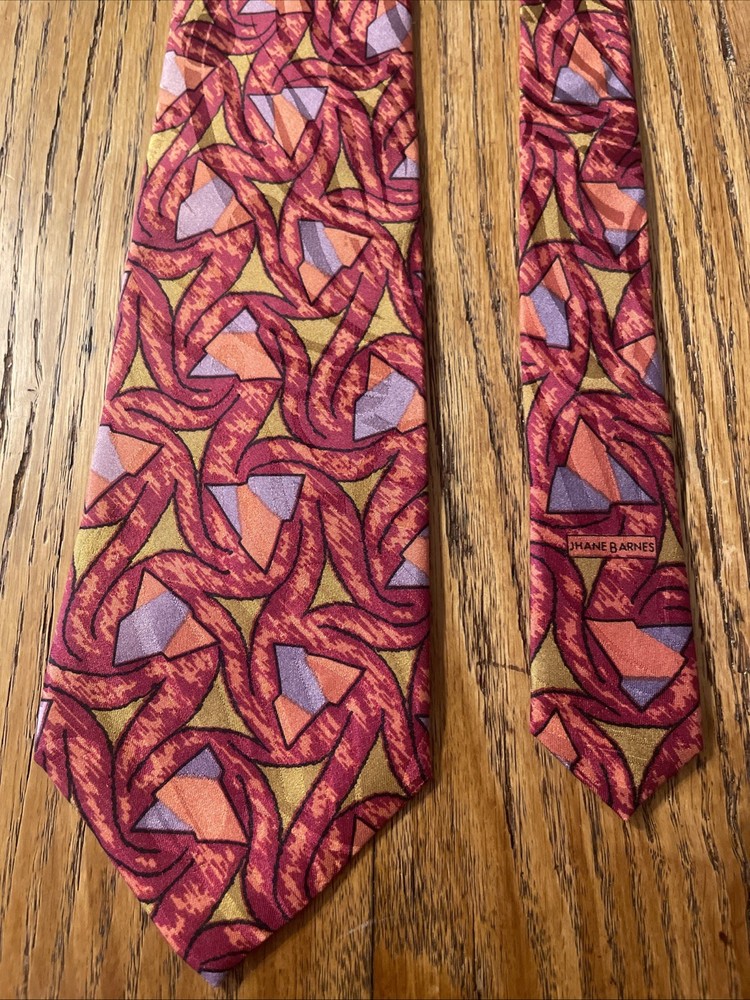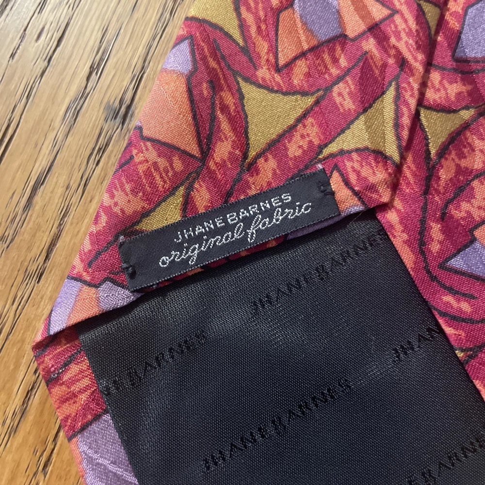 Crafted with the discerning gentleman in mind, this Jhane Barnes necktie marries classic style with a modern twist. The abstract geometric pattern boasts a vibrant multicolor palette that adds a dash of sophistication to any ensemble. Made in Japan, the tie is a testament to exquisite craftsmanship, featuring a classic width that ensures a timeless knot. The luxurious 100% silk fabric offers a smooth, impeccable knot every time, while the designer style embodies preppy elegance. Suitable for a variety of occasions, this tie effortlessly elevates your wardrobe, making it a versatile addition for the style-conscious individual.