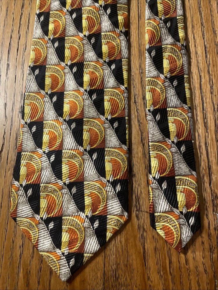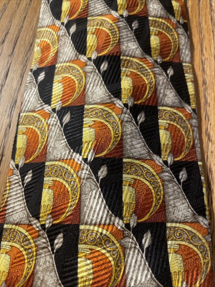 $ 7.75Vintage EUC Michel Royal Baroque Geometric Silk Tie Necktie Hand Made In Spain