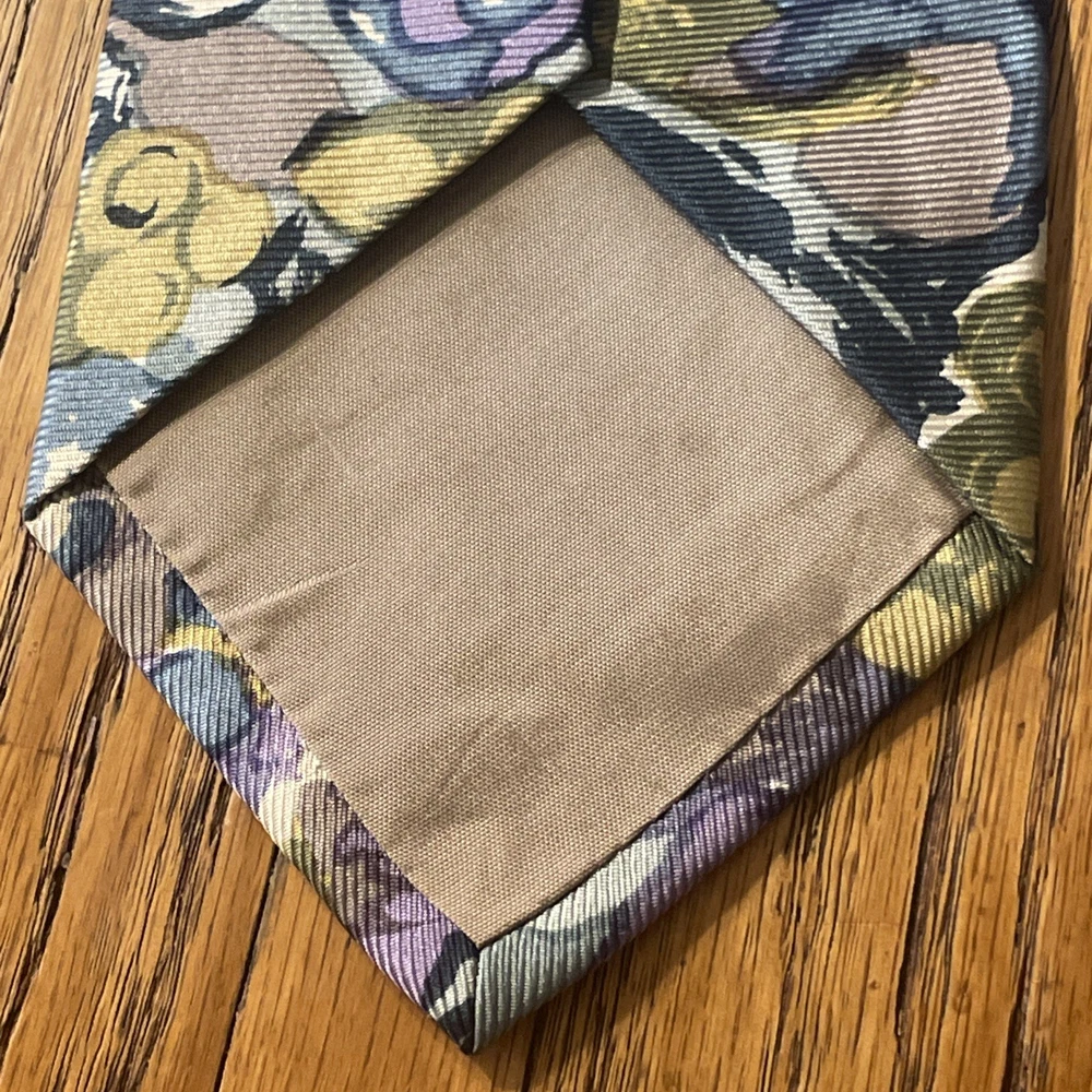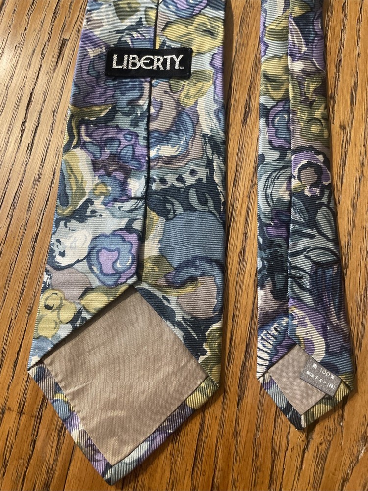 This Vintage EUC Liberty Floral Silk Tie is a classic men's accessory made in Japan. The tie features a beautiful multicolor floral pattern, crafted from 100% silk satin fabric. With a designer style and preppy theme, this tie exudes a sense of sophistication and timeless elegance. The vintage nature of the tie adds a touch of nostalgia and uniqueness to any outfit, making it a standout piece in any gentleman's wardrobe.