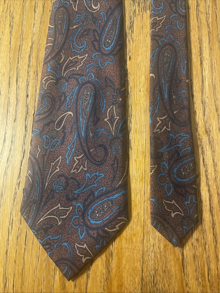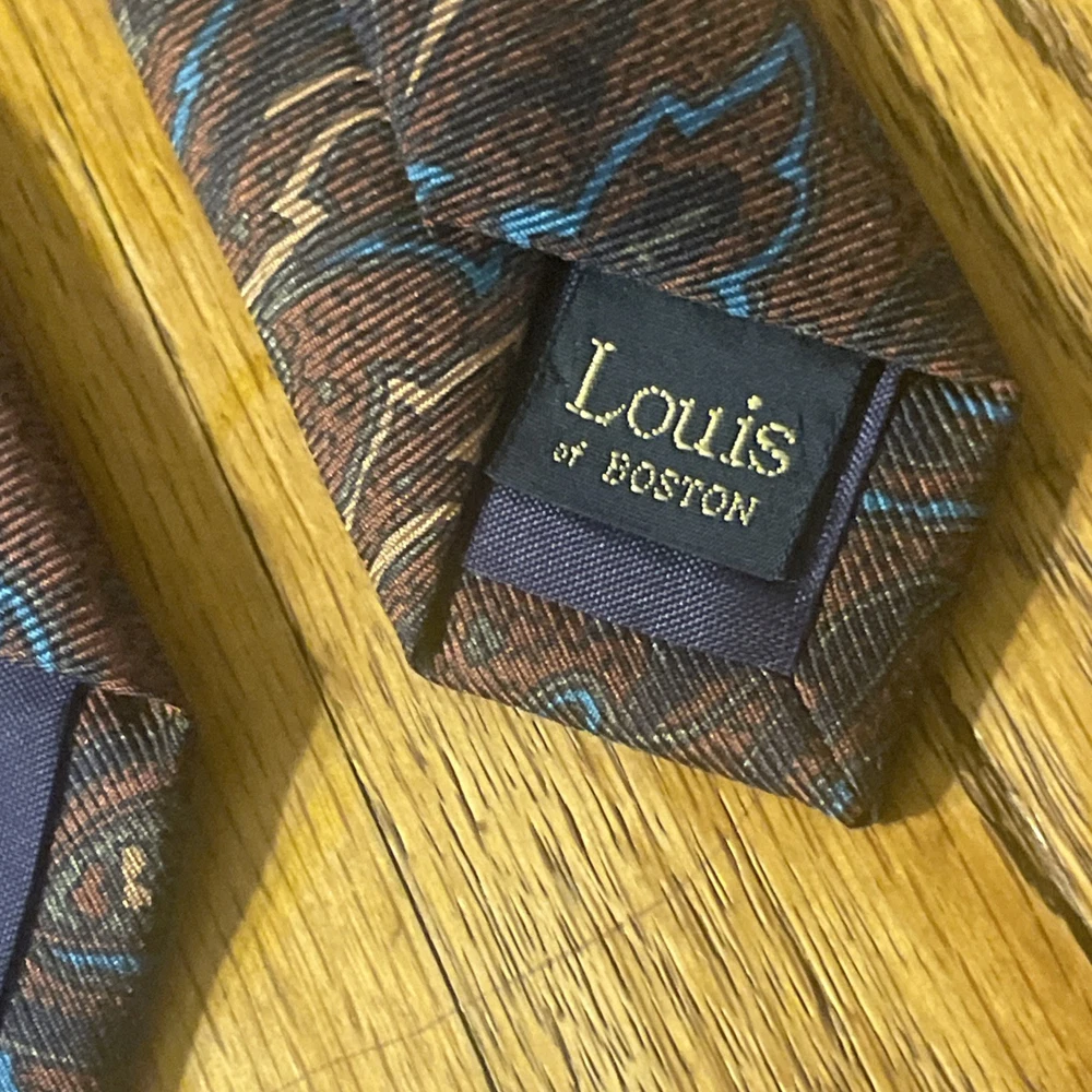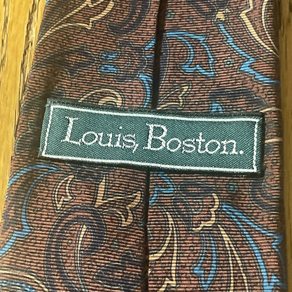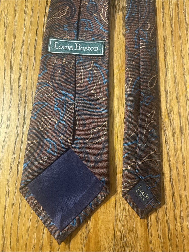 This Vintage EUC Louis Of Boston Silk Paisley Tie Necktie is a designer accessory for men, handcrafted in Japan. Made from 100% silk in a classic width, this multicolor tie features a preppy paisley pattern perfect for adding a touch of sophistication to any outfit. The high-quality satin fabric and timeless design make it a versatile and stylish piece for any occasion.