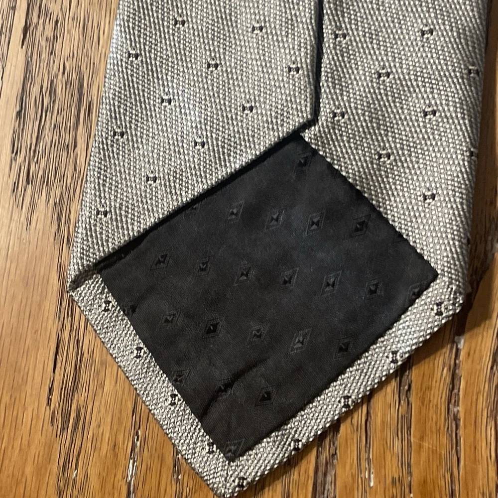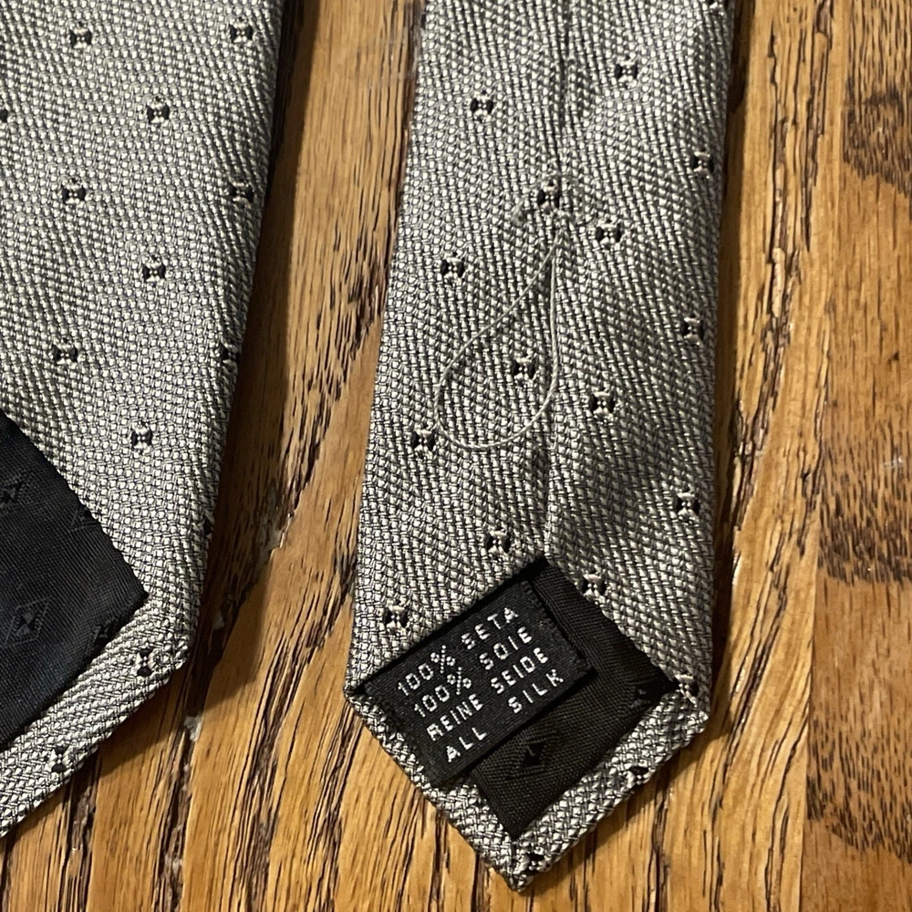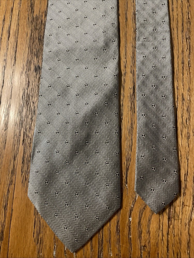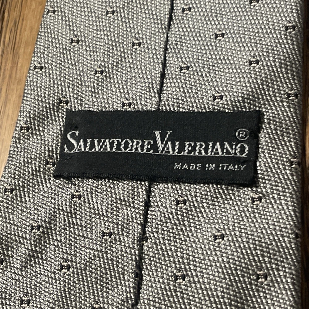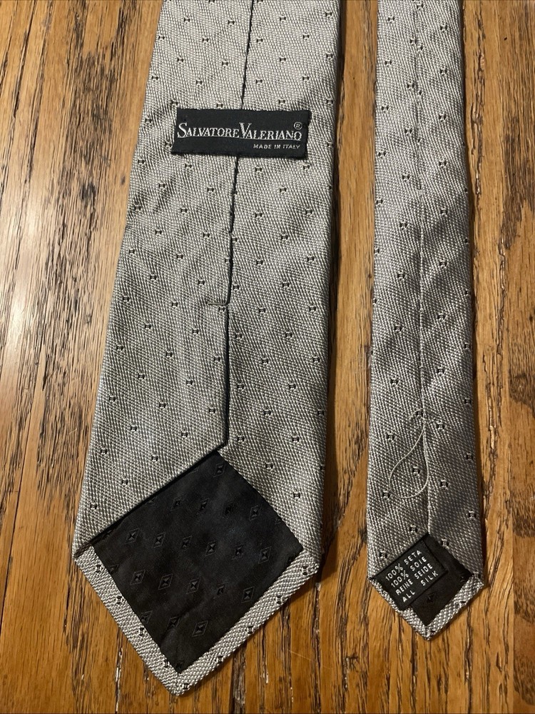 Item Width: Classic Vintage: Yes Style: Designer Fabric Type: Woven Brand: Salvatore Valeriano Color: Metallic Silver Department: Men Country of Origin: Italy Material: 100% Silk Theme: Preppy Type: Tie Pattern: Geometric