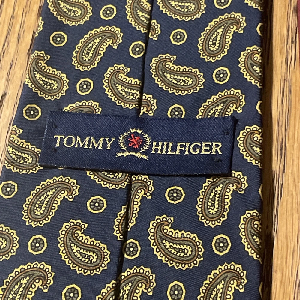 Material: Silk Color: Multicolor Item Width: Classic Theme: Preppy Style: Designer Fabric Type: Satin Pattern: Paisley Vintage: Yes Country of Origin: United States Department: Men Brand: Tommy Hilfiger Type: Tie