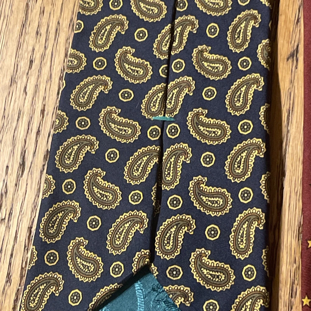 This Vintage EUC Tommy Hilfiger Silk Paisley & Stars Tie is a designer necktie made in the USA. The tie features a classic multicolor paisley pattern with stars, perfect for a preppy and sophisticated look. Made from luxurious silk satin fabric, this tie exudes a timeless and stylish charm. Ideal for men who appreciate high-quality accessories with a vintage touch, this Tommy Hilfiger necktie is a timeless addition to any wardrobe.
