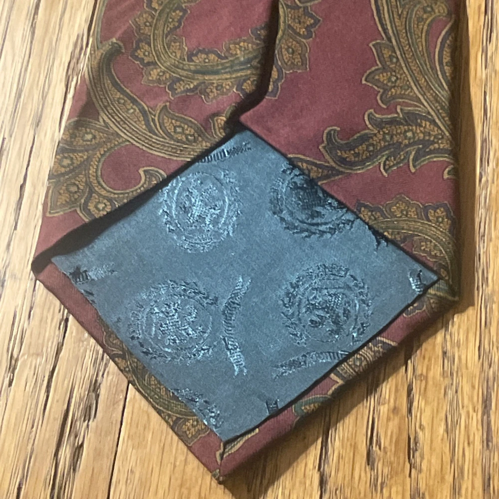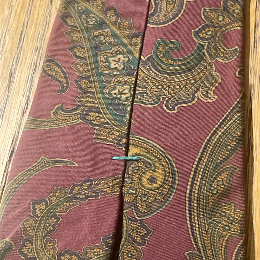 This vintage Tommy Hilfiger silk paisley tie is a classic and stylish accessory for men, featuring a preppy design with a multicolor paisley pattern. Made in the USA with 100% silk fabric, this designer necktie exudes a timeless and sophisticated charm that is perfect for any formal or professional occasion. Its classic width and high-quality material make it a versatile and high-quality addition to any man's wardrobe.