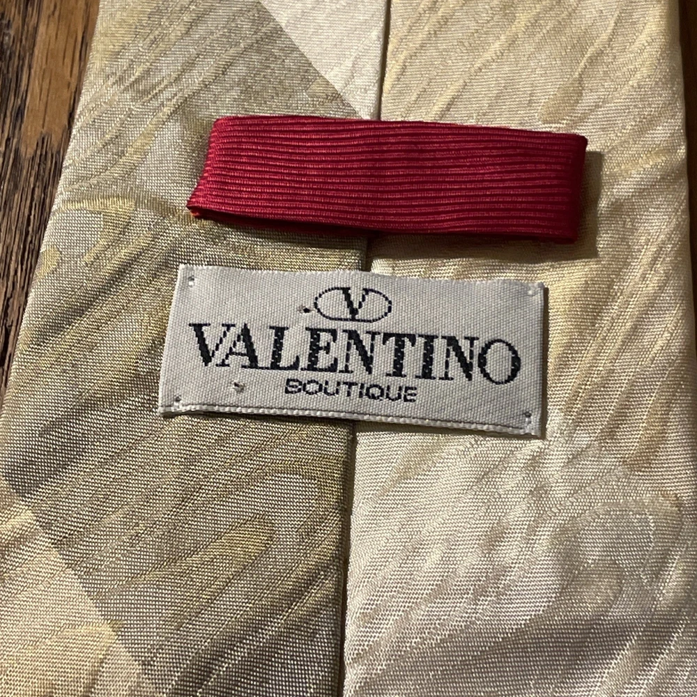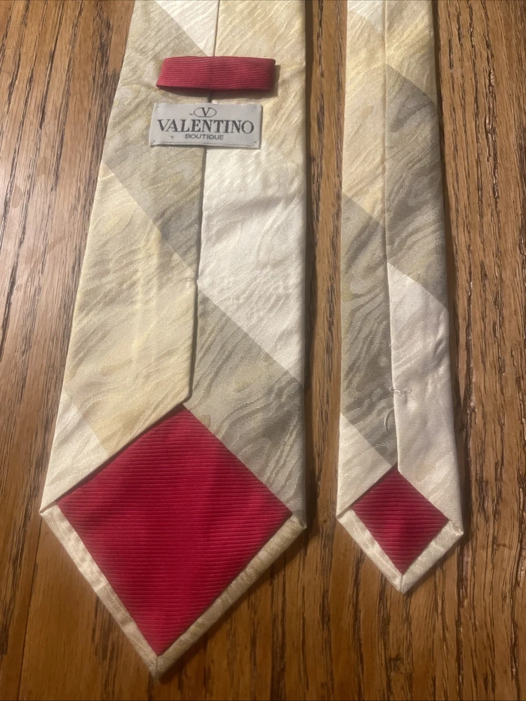 Material: 100% Silk Type: Tie Department: Men Style: Designer Fabric Type: Satin Color: Multicolor Country of Origin: Italy Theme: Preppy Item Width: Classic Brand: Valentino Vintage: Yes Pattern: Striped