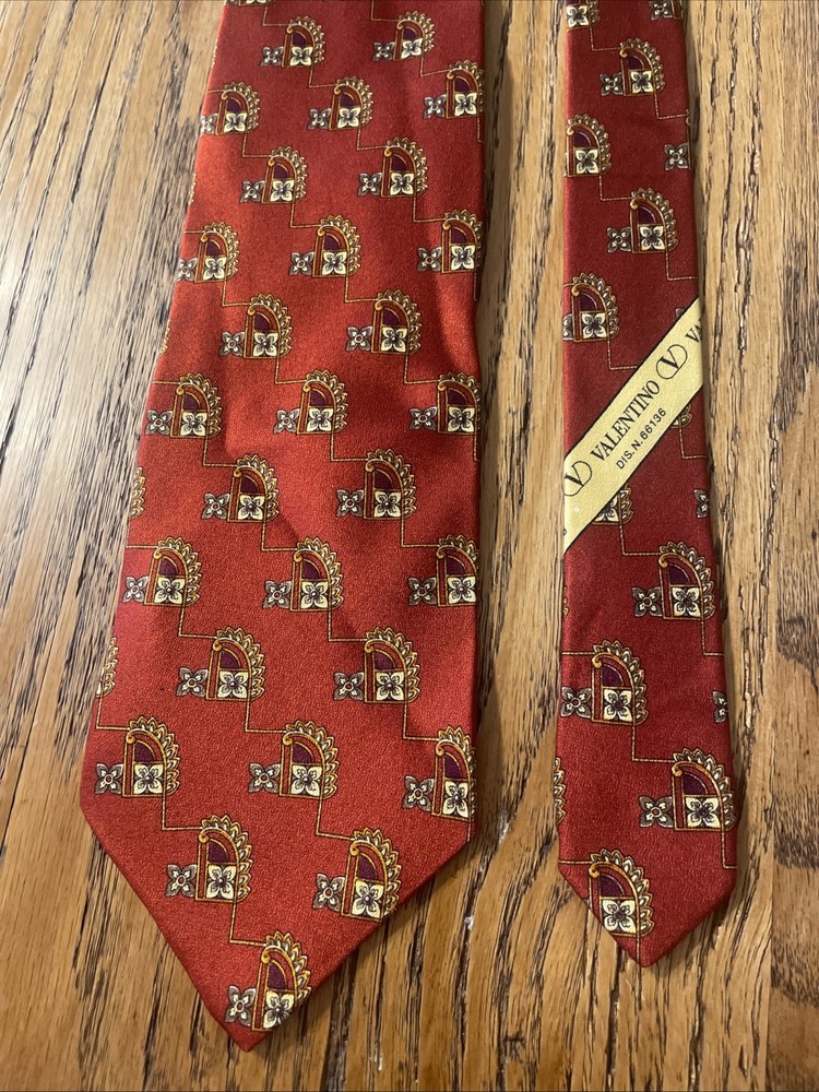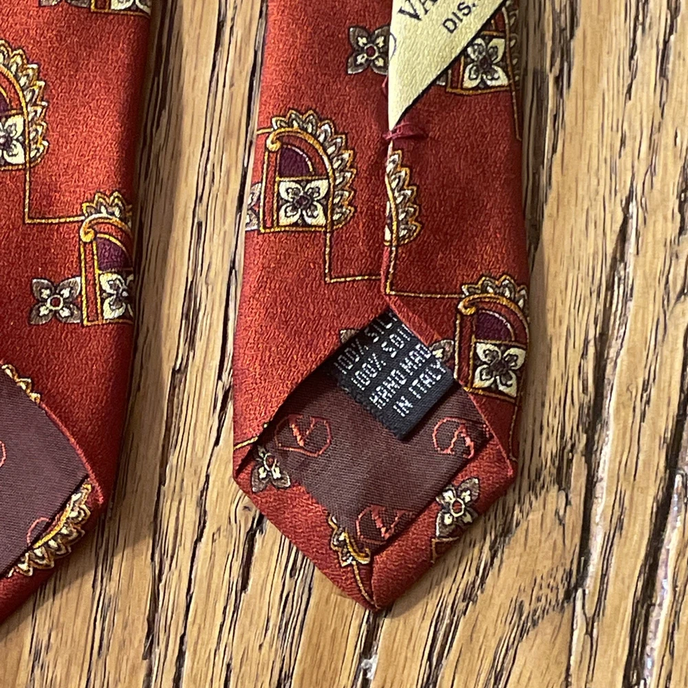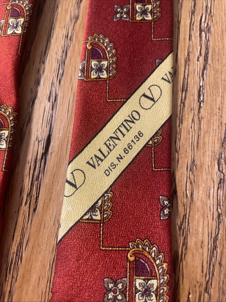 This Vintage Valentino Cravatte Silk Geometric Floral Tie is a luxurious and stylish accessory for men, made in Italy with 100% silk satin fabric. The tie features a geometric floral pattern in multicolor, exuding a preppy and designer style. With a classic width, this tie is perfect for adding a touch of sophistication to any outfit, making it a timeless piece for any man's wardrobe.