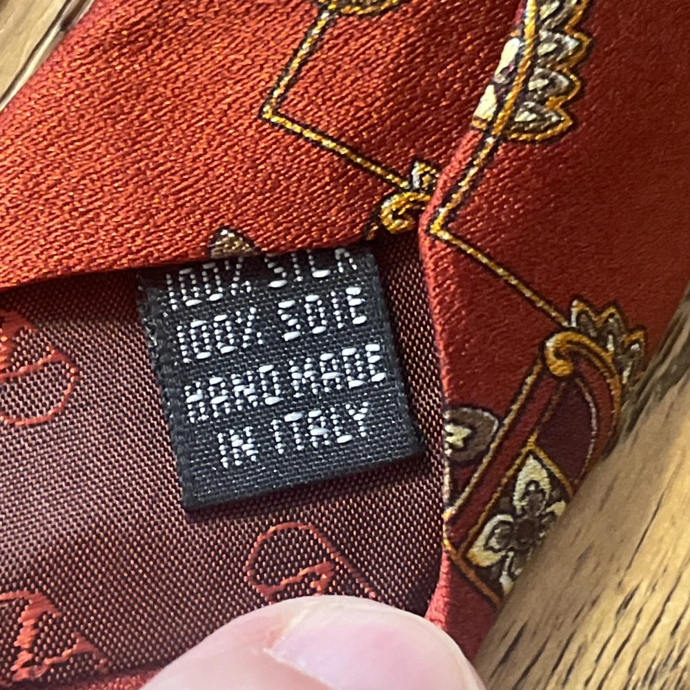 $ 10.56VTG USA Polo Ralph Lauren Diamond Print Handmade Tie Silk Burgundy Gold Maroon