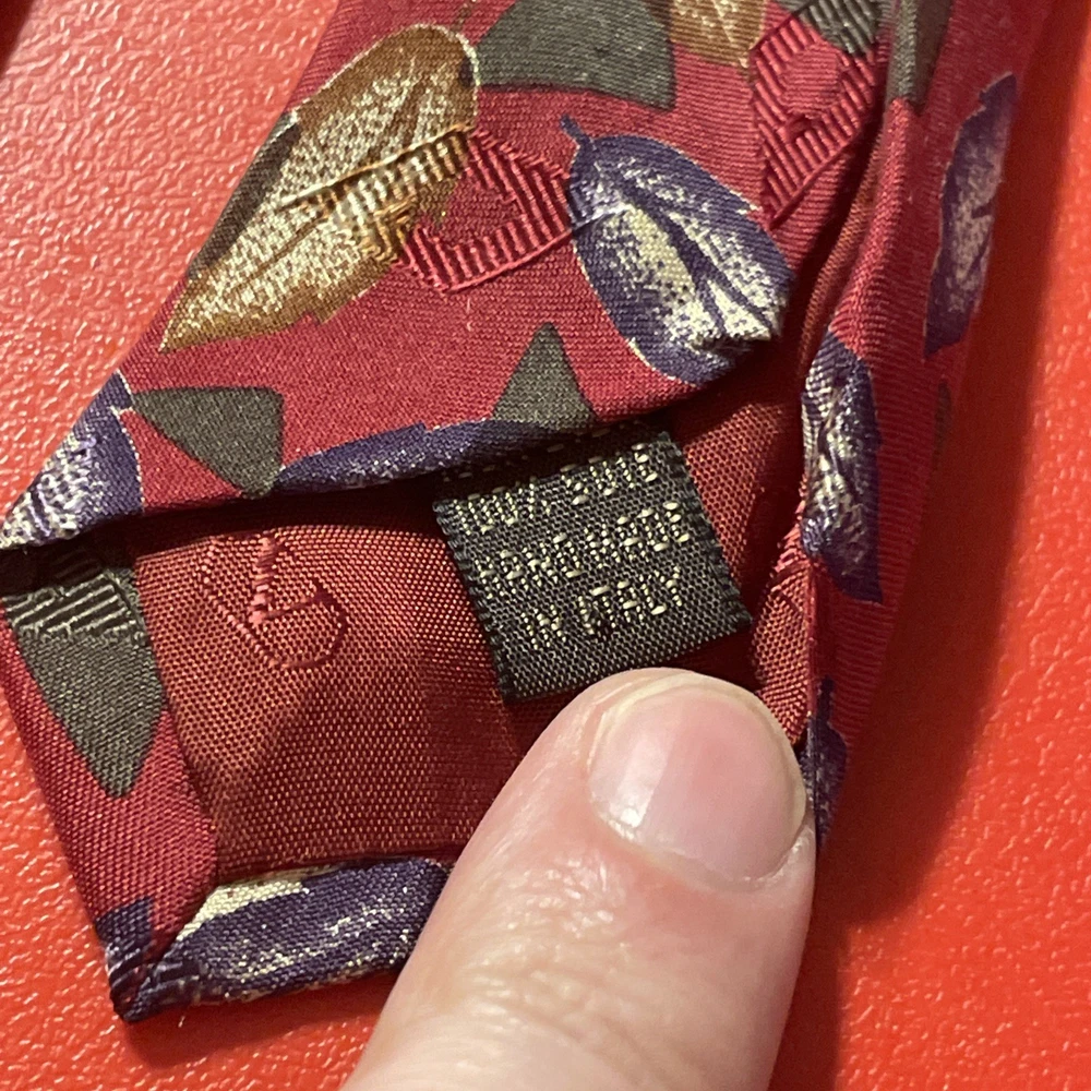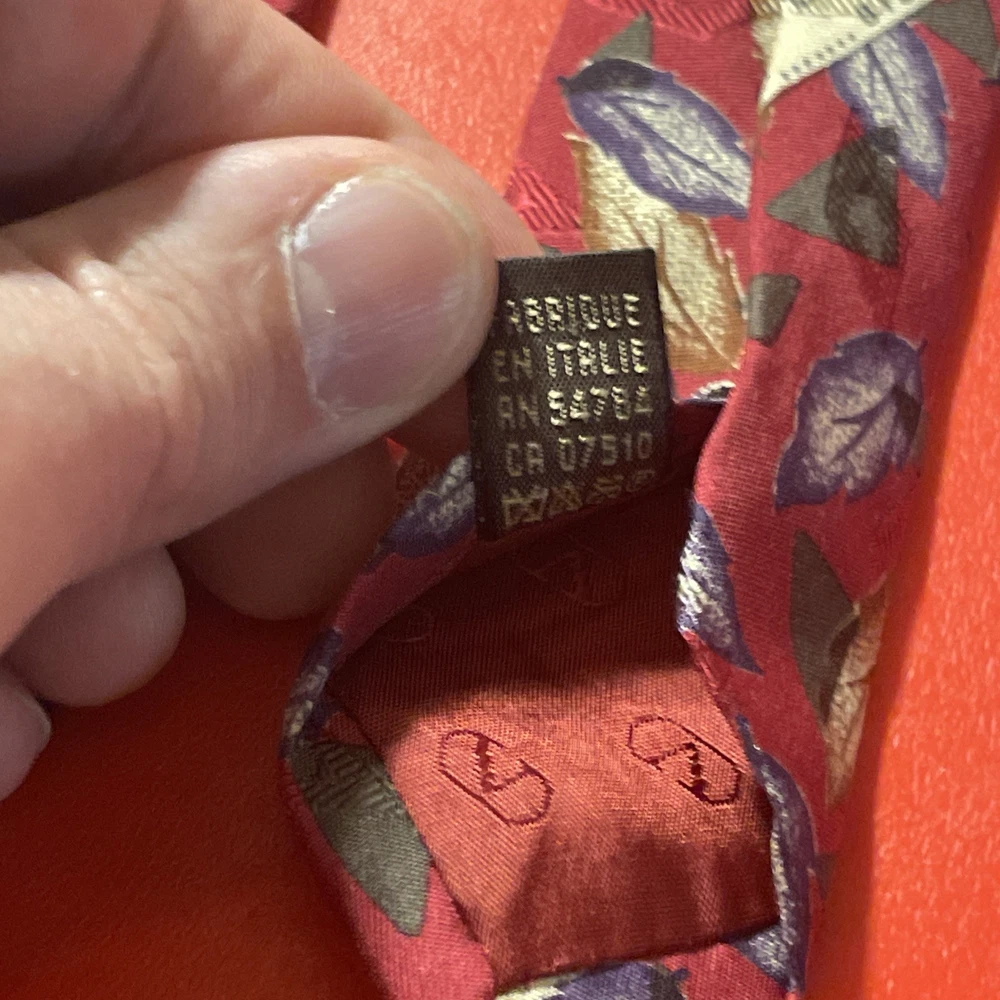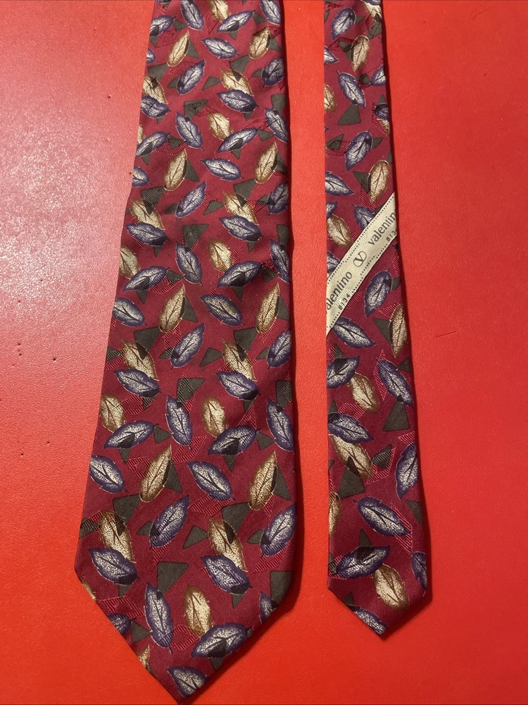 This vintage Valentino Cravatte silk tie is a designer accessory for men, featuring a classic leaves theme in a multicolor pattern. Made in Italy from 100% silk satin fabric, this preppy-style necktie adds a touch of elegance and sophistication to any outfit. The timeless design and high-quality material make it a versatile and stylish addition to any man's wardrobe.
