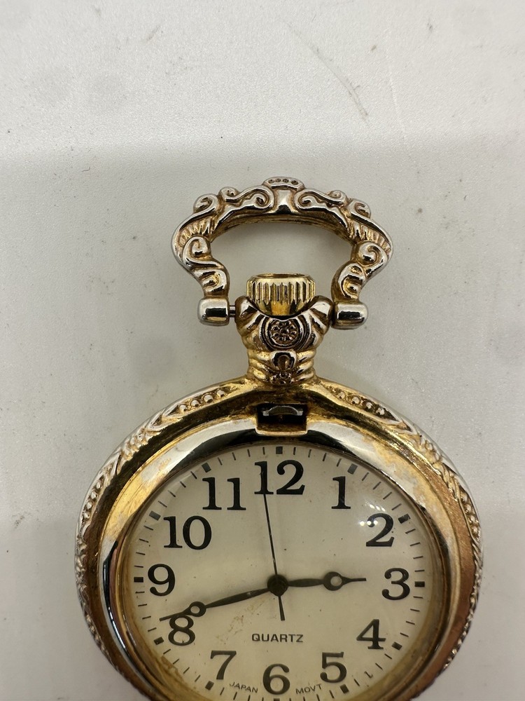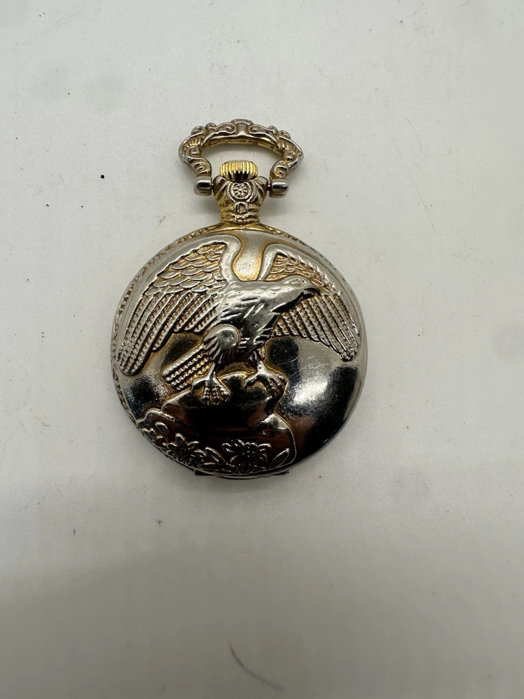 Vintage Watch-It Eagle Pocket Watch Ornate Gold Tone Quartz untested