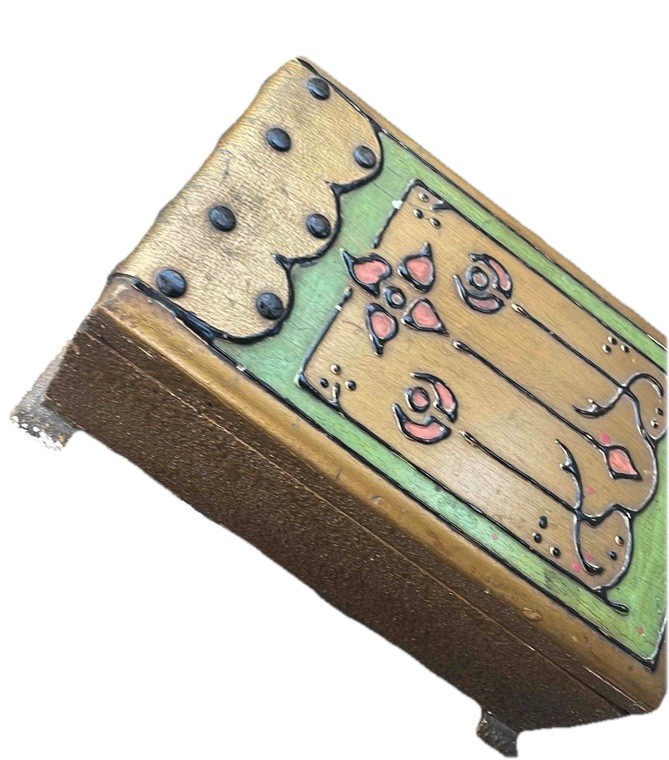 This vintage hand-painted keepsake box from the early 20th century Arts & Crafts Era is a beautifully crafted piece that exudes artistry and charm. The intricate hand-painted design, featuring a boxing subject, adds a unique and nostalgic touch to any collection. Made by the brand CENTURY, this collectible item is not only functional but also a lovely decorative piece that captures the essence of the Arts & Crafts movement. This came from an elderly woman in Florida. She told me her mother had it for years and it’s from her wedding in early 20s. I believe it was a keep sake box for a Bible.