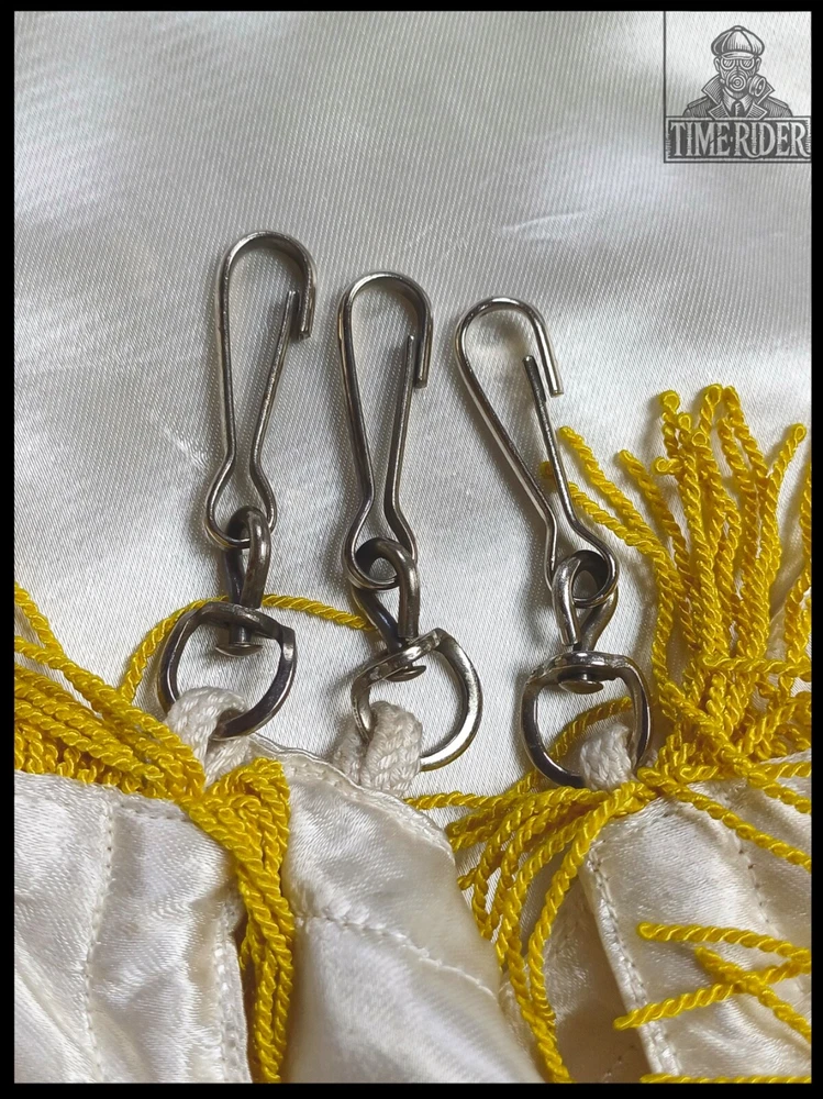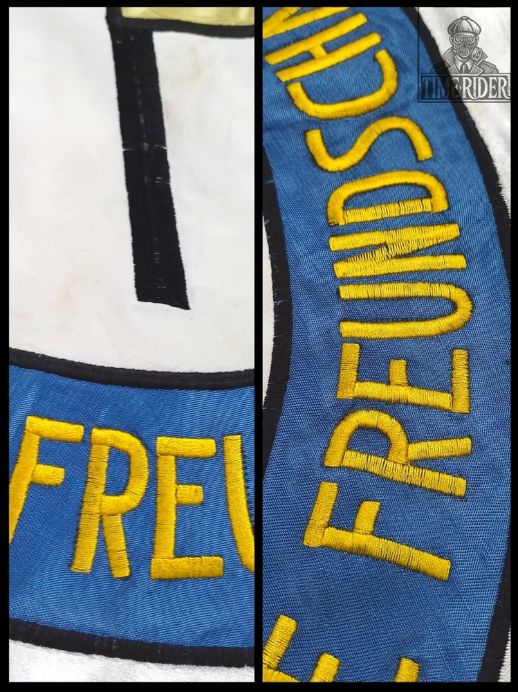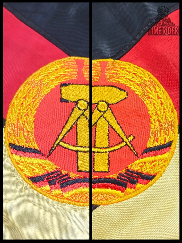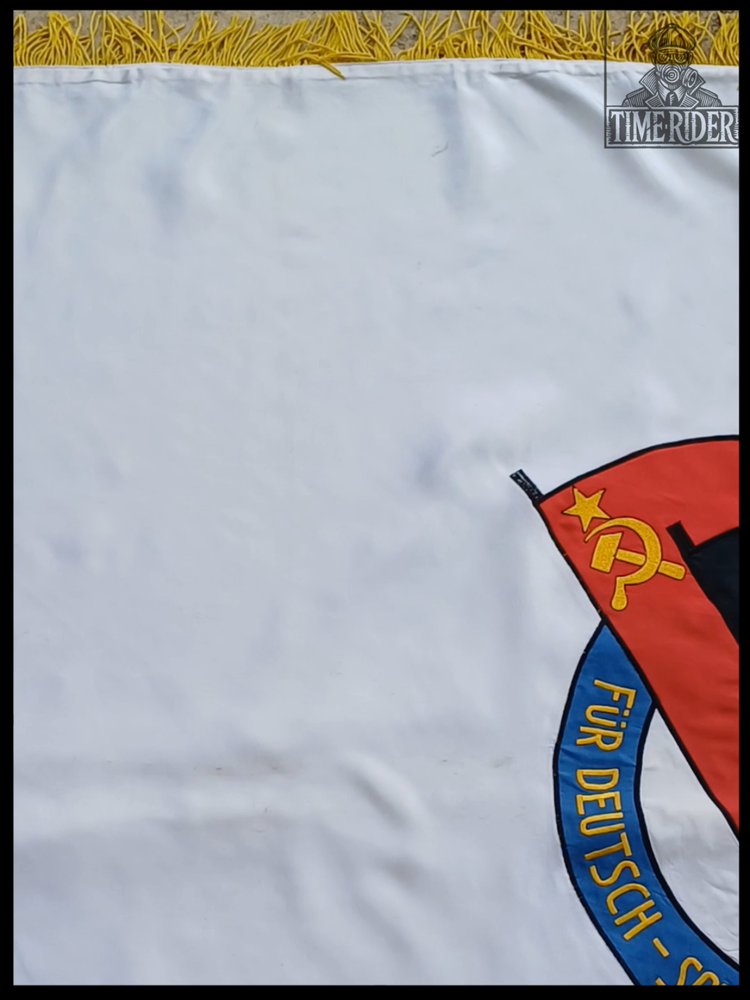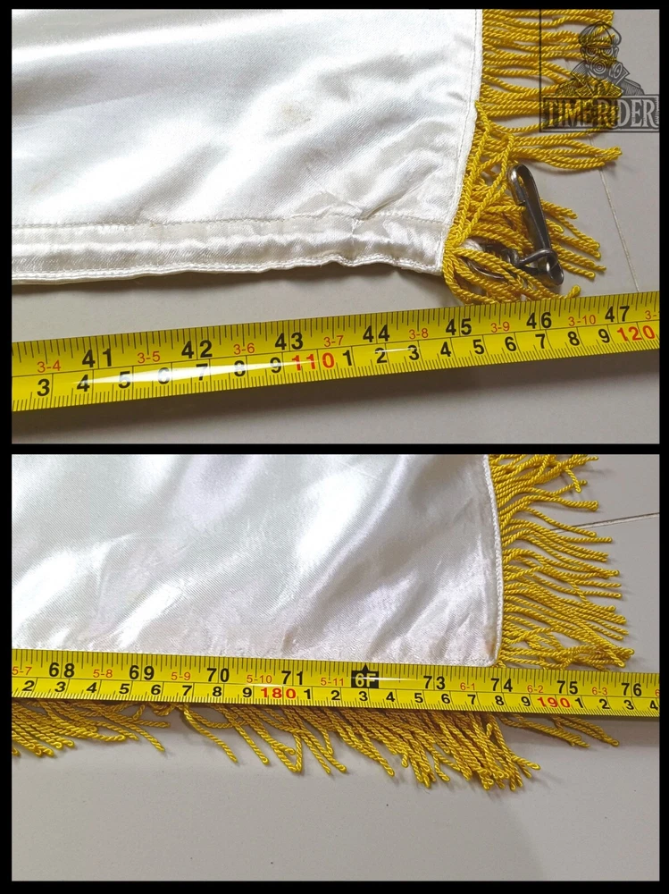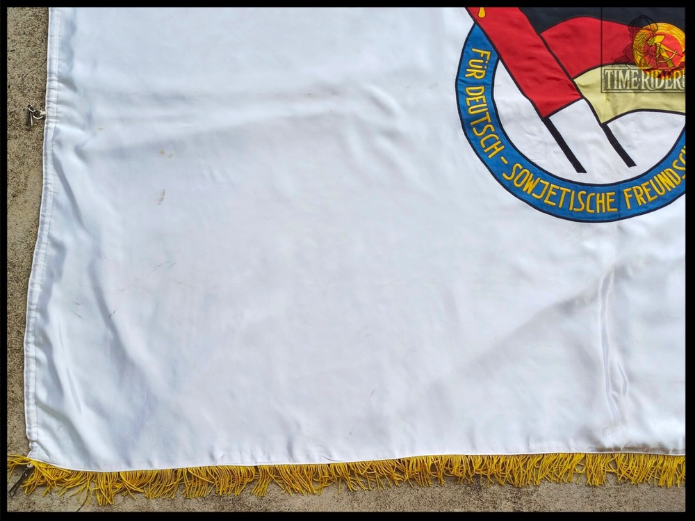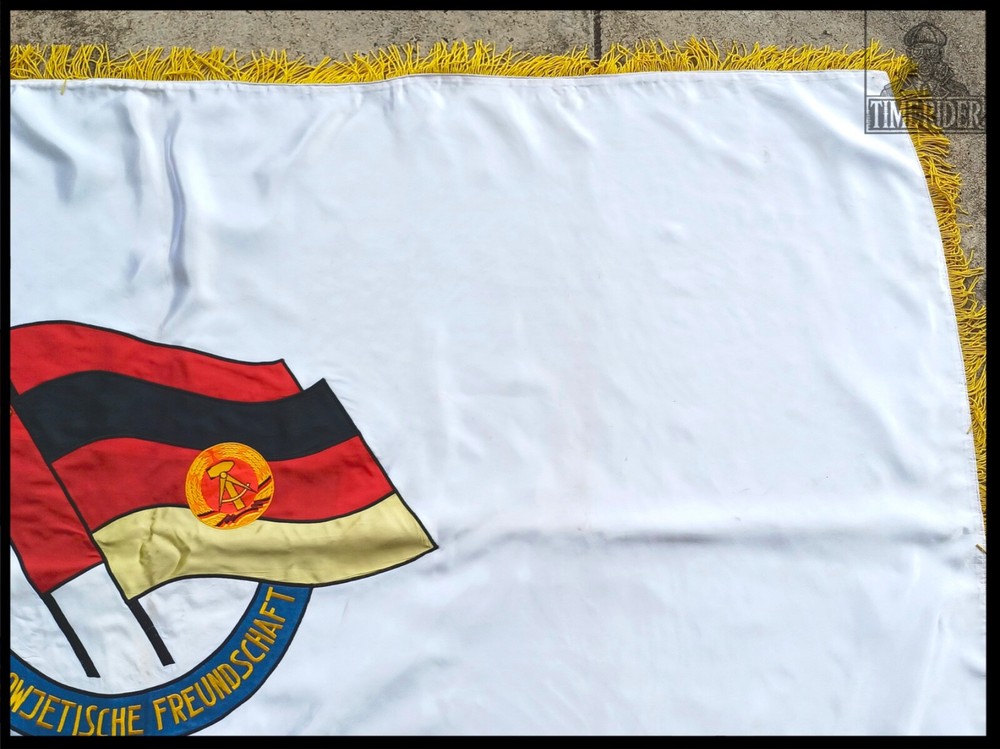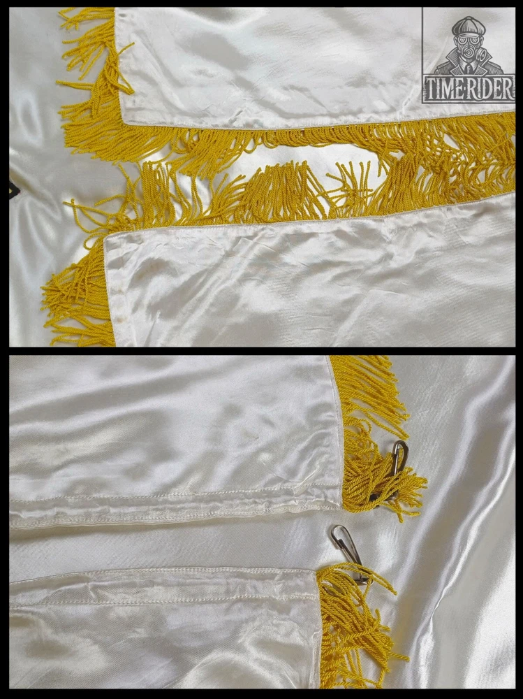 A striking piece of Cold War-era memorabilia. Crafted from silk or satin, it features a double-sided design with an embroidered emblem and elegant gold fringe—a symbol of solidarity between two historic nations. A rare and meaningful collectible for Cold War historians, political memorabilia collectors, or vintage textile enthusiasts. — Key Details — Condition : Excellent vintage condition with minor signs of age and faint stains (see photos) Era : Circa 1950s-1960s Origin : Germany Material : Silk or satin body, cotton header, hemp rope Features : Double-sided embroidery, gold fringe trim, ready for hanging Size : - Actual Size (Laid Flat Measurement) : W. 74” x H. 45” (188 x114 cm.) Weight : 1200 g. ----------------------------------------------------------------------------------------------------- SHOP POLICIES AND GENERAL INFO: All orders are final and sold as-is. Please check measurements and/or ask any questions BEFORE your purchase. Please check detailed description. All items have a history and Time Rider Vintage Shop strives to choose only items that are in very good used condition. Irregularities or slight signs of wear might be present. Color representation may vary depending on monitors. Please review fabric care under FAQ. Thank you for checking in and let us know if you have any questions! EB110FL-W1350-3500T300