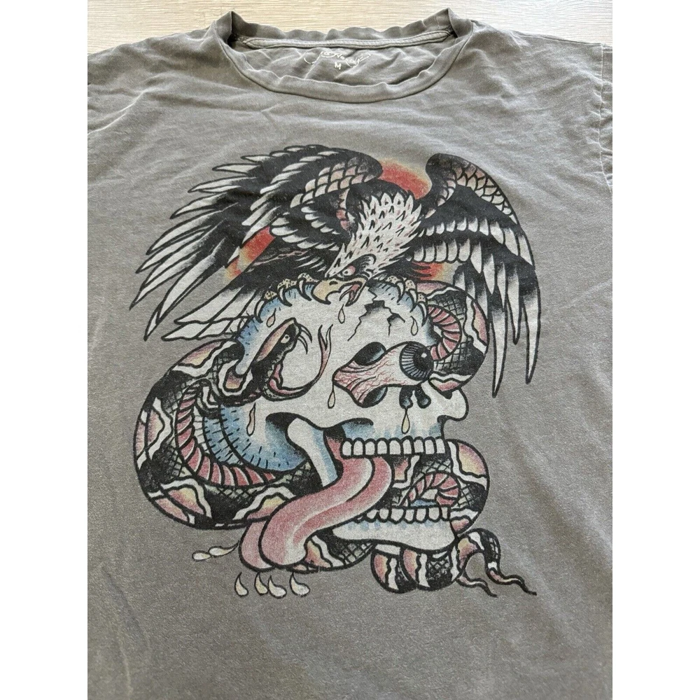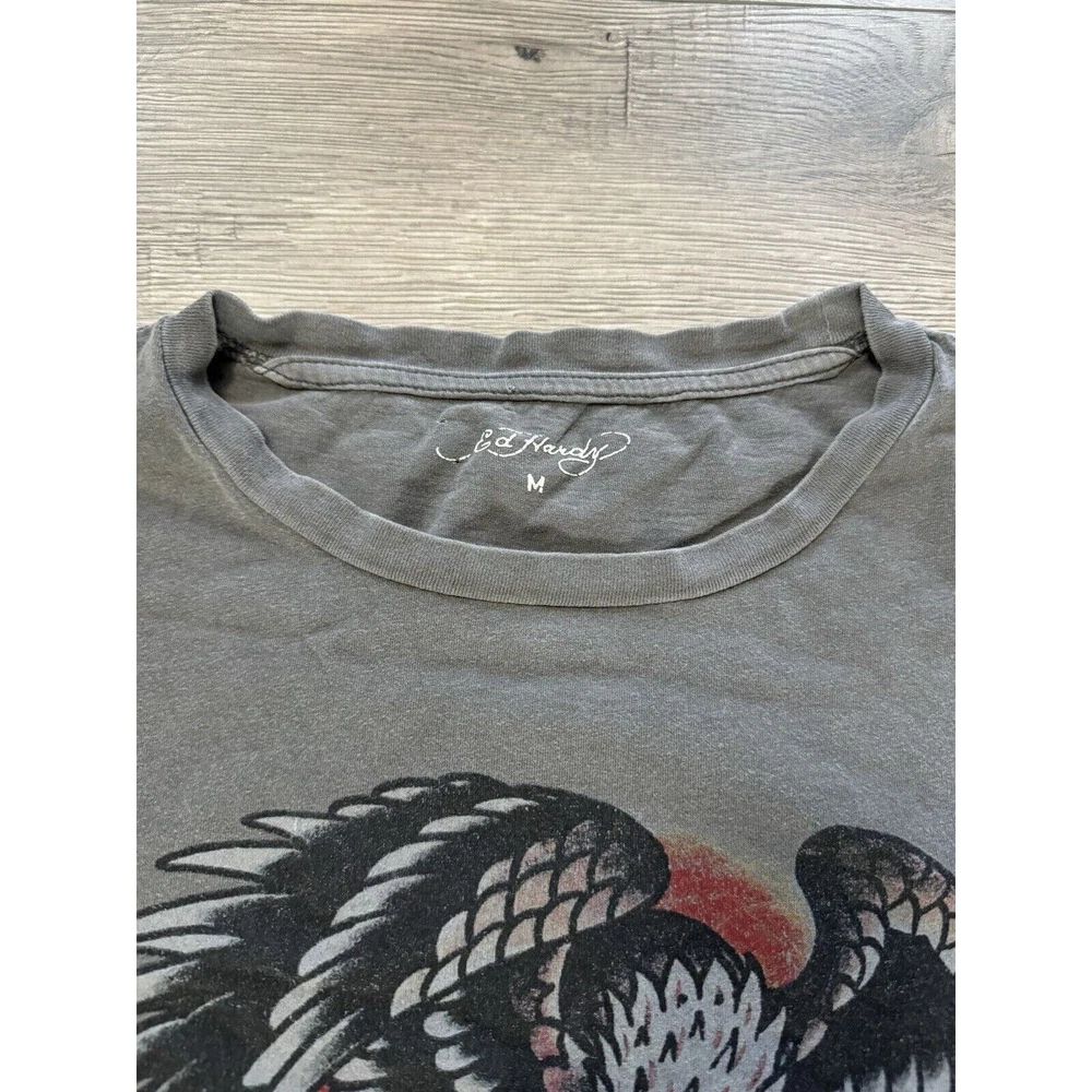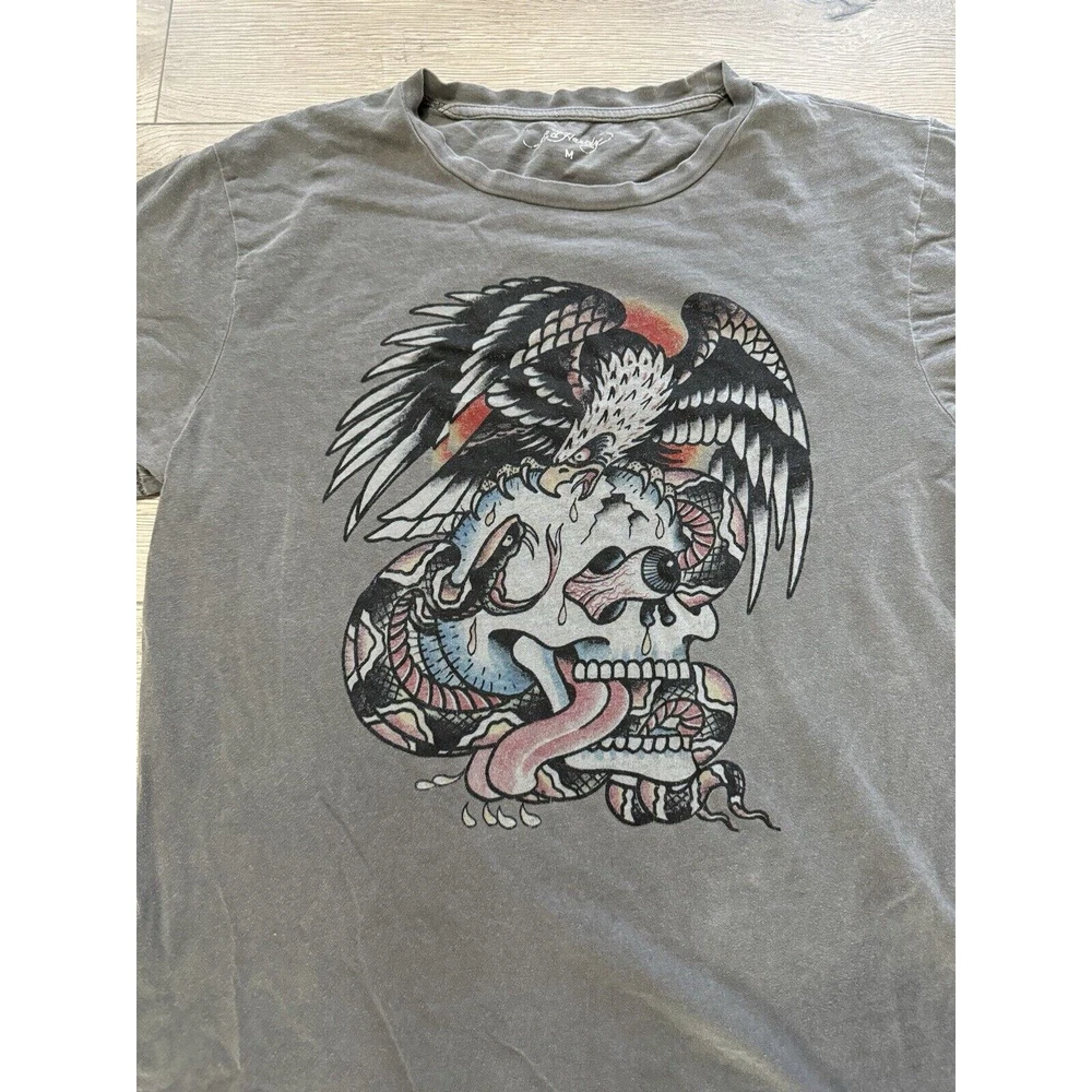 Vintage Ed Hardy T Shirt Gray Skull Graphics Print Tee Womens Size M. Condition is Pre-owned. Shipped with USPS Ground Advantage.