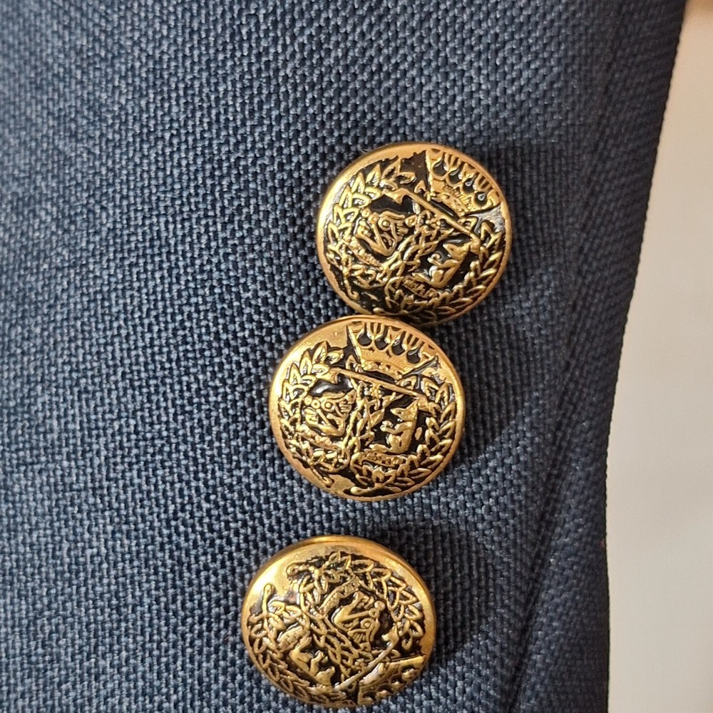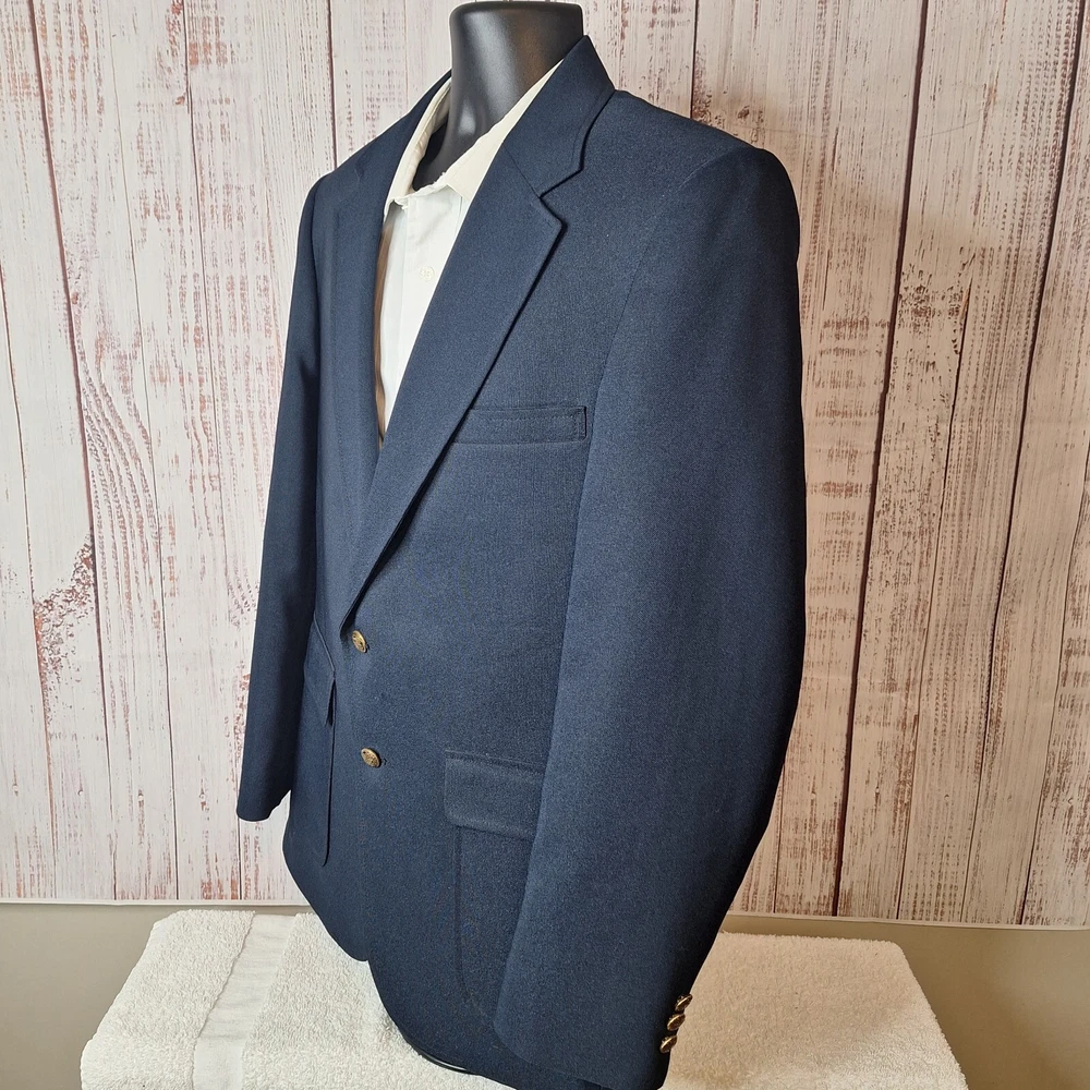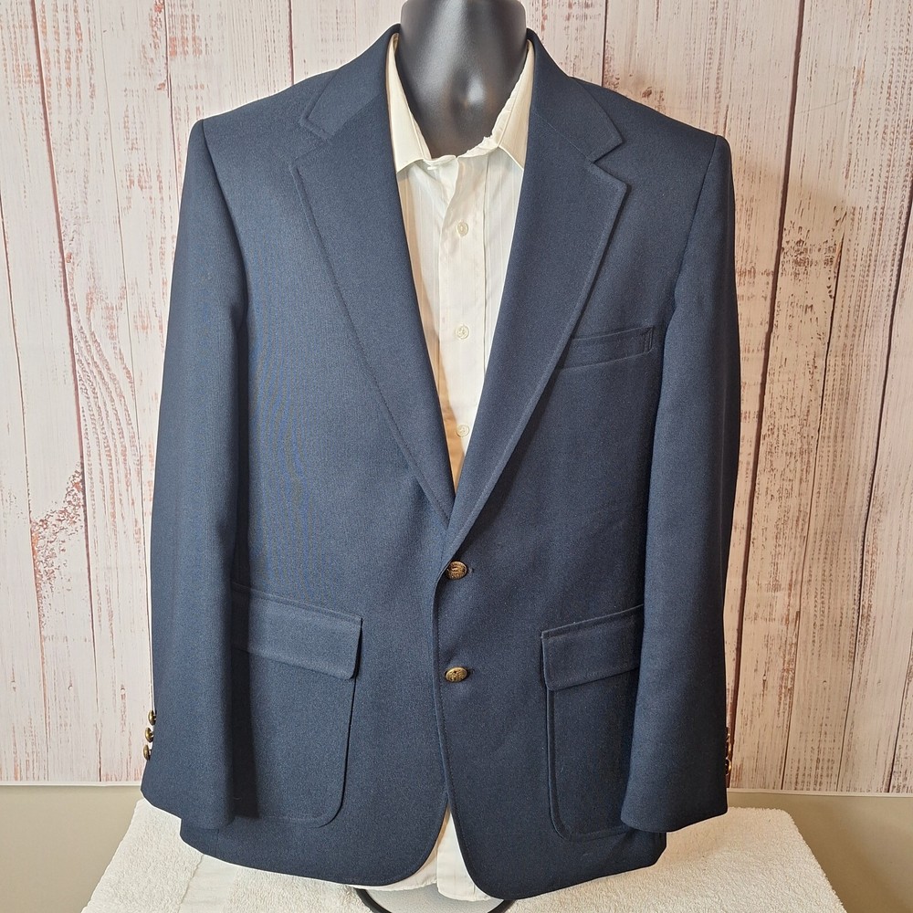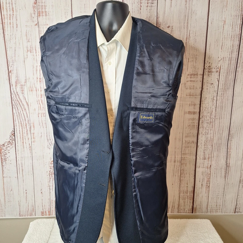 Vintage Edwards Sport Coat Blazer Mens 40R Blue Gold Button USA Quality used condition. Please check out the measurements before buying to ensure a perfect fit. Most likely Poly Wool Blend based on Feel or pure poly Shirt Size on Label 40R Shoulder- Hem 30.00'' Shoulder- Shoulder 19.00'' Shoulder- Wrist 25.00'' Armpit- Armpit 22.00'' Top button 20.00'' Everything ships within a day. Feel free to message me with any questions. Thank you very much. 2/5/24