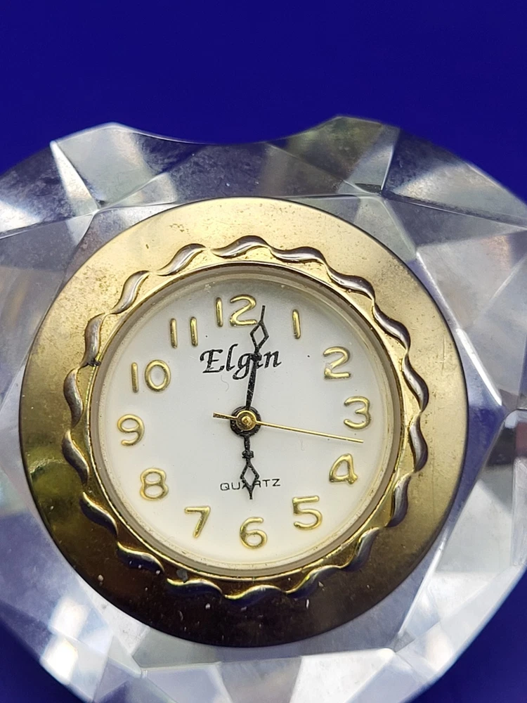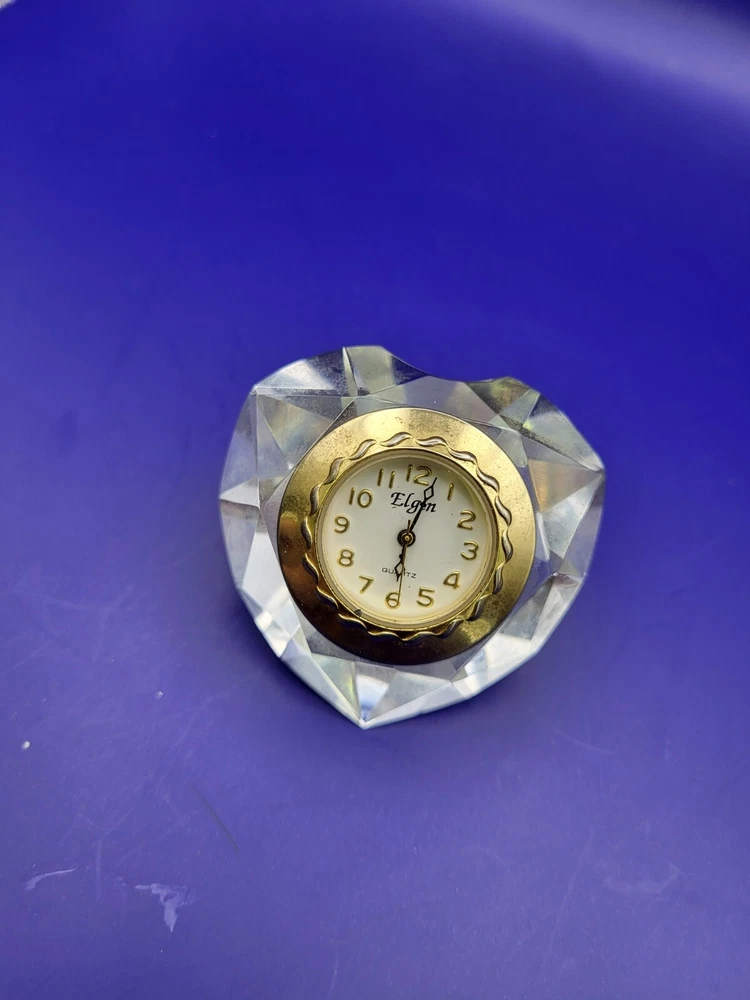 Vintage Elgin Mini Clock Diamond Heart Japan Quartz Movement Desk New Battery. Condition is Used. Shipped with USPS Ground Advantage.