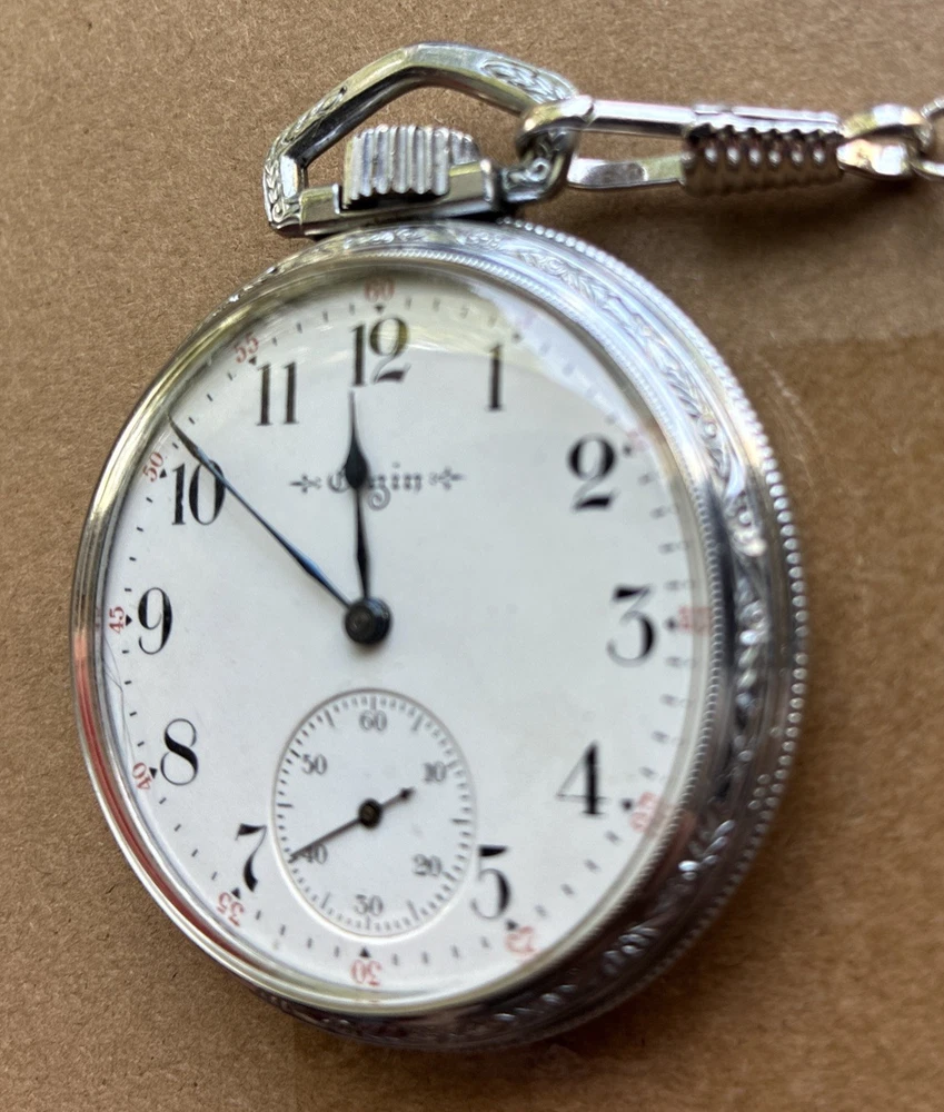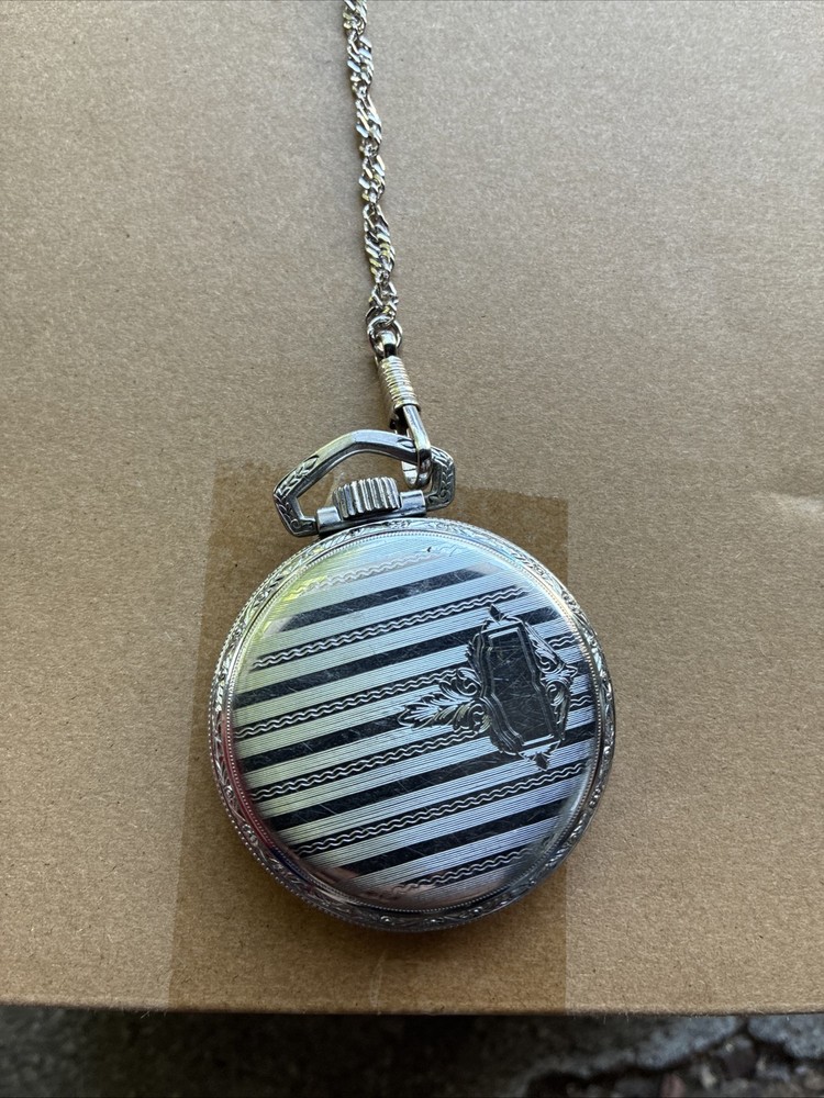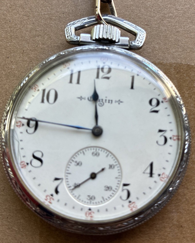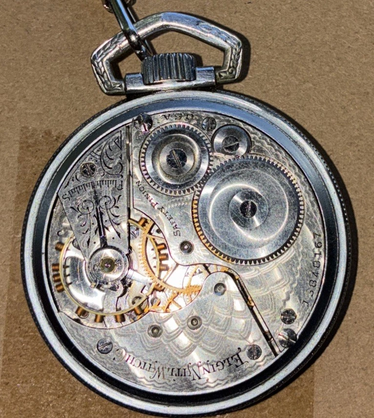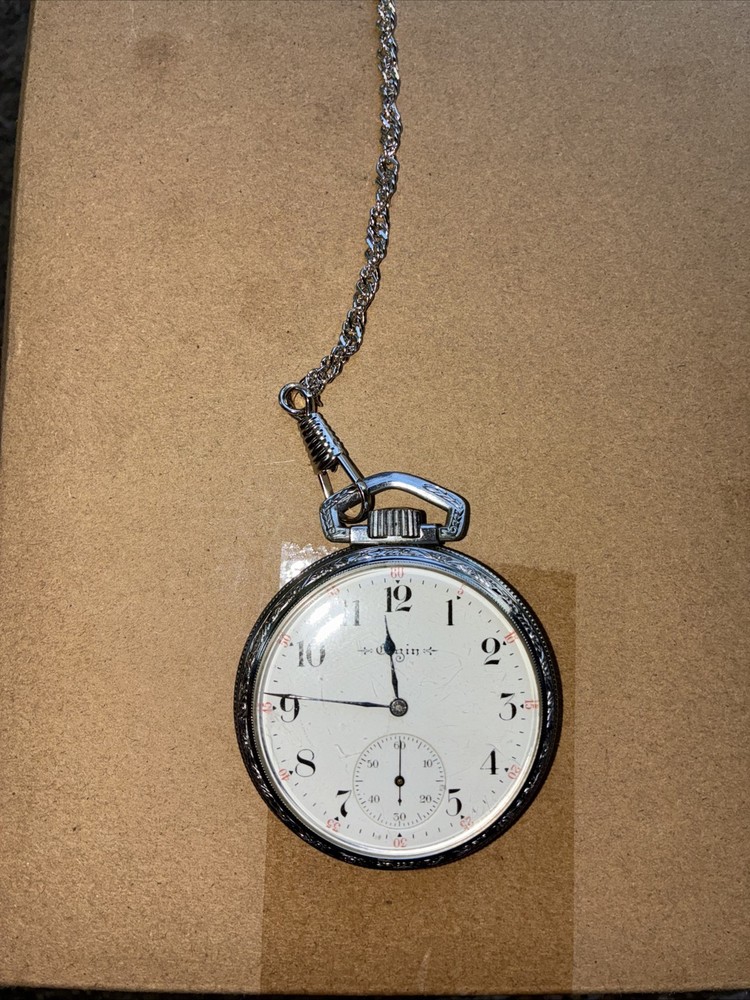 The Elgin Open Face Base Metal Pocket Watch is a vintage timepiece with a classic design. Featuring a damaskeened movement finish, Arabic numerals on the indices, and a white single sunk dial, this pocket watch exudes a casual style perfect for everyday wear. The watch has a screwback caseback and comes with features such as an acrylic crystal, seconds hand, 12-hour dial, and enameled dial. With a base metal case in a satin-finished silver color, this pocket watch from the United States is a unique and charming accessory for men who appreciate a mix of nostalgia and modern functionality. It is used in ok condition works fine. Don’t know how many jewels it is It’s not written inside.? Please check all pics selling as is No returns or refund