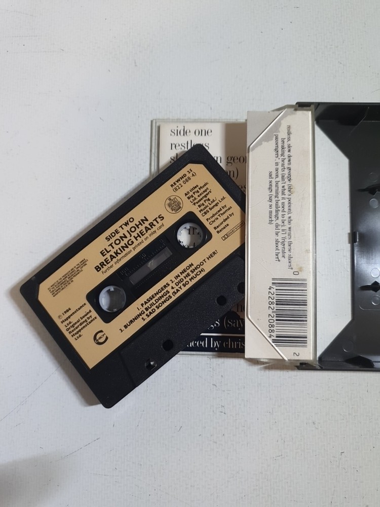This vintage cassette tape features the iconic Elton John's "Breaking Hearts" album, released in 1984 under Phonogram Records. The cassette comes in a standard jewel case and includes the original inner sleeve. The multicoloured album is a first edition and features singer-songwriter and pop rock genres from the 1980s era. The cassette is a great addition to any music collection and is perfect for any occasion. The inlay and case conditions are good (G), and the cassette format makes it easy to play and enjoy the music. This item is a must-have for any Elton John fan or pop music enthusiast.