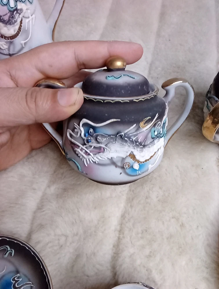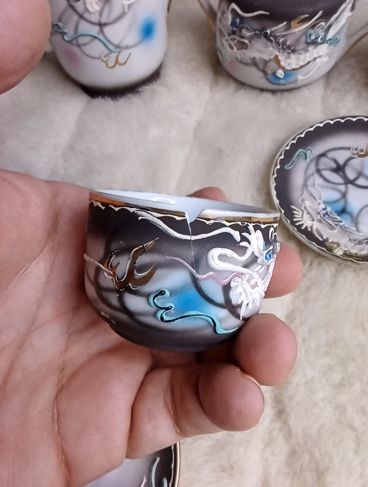 One tea cup has some damage overall good condition check photos sold as is.