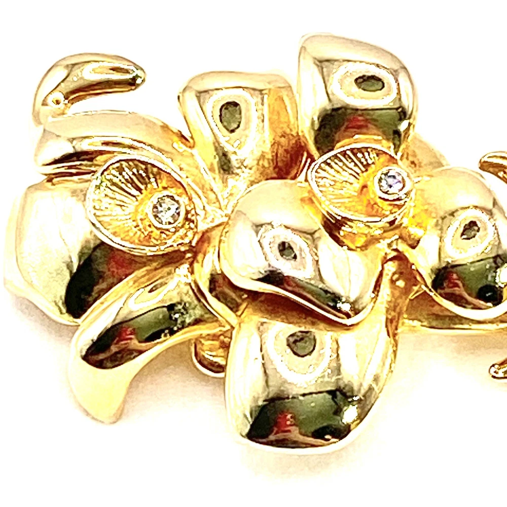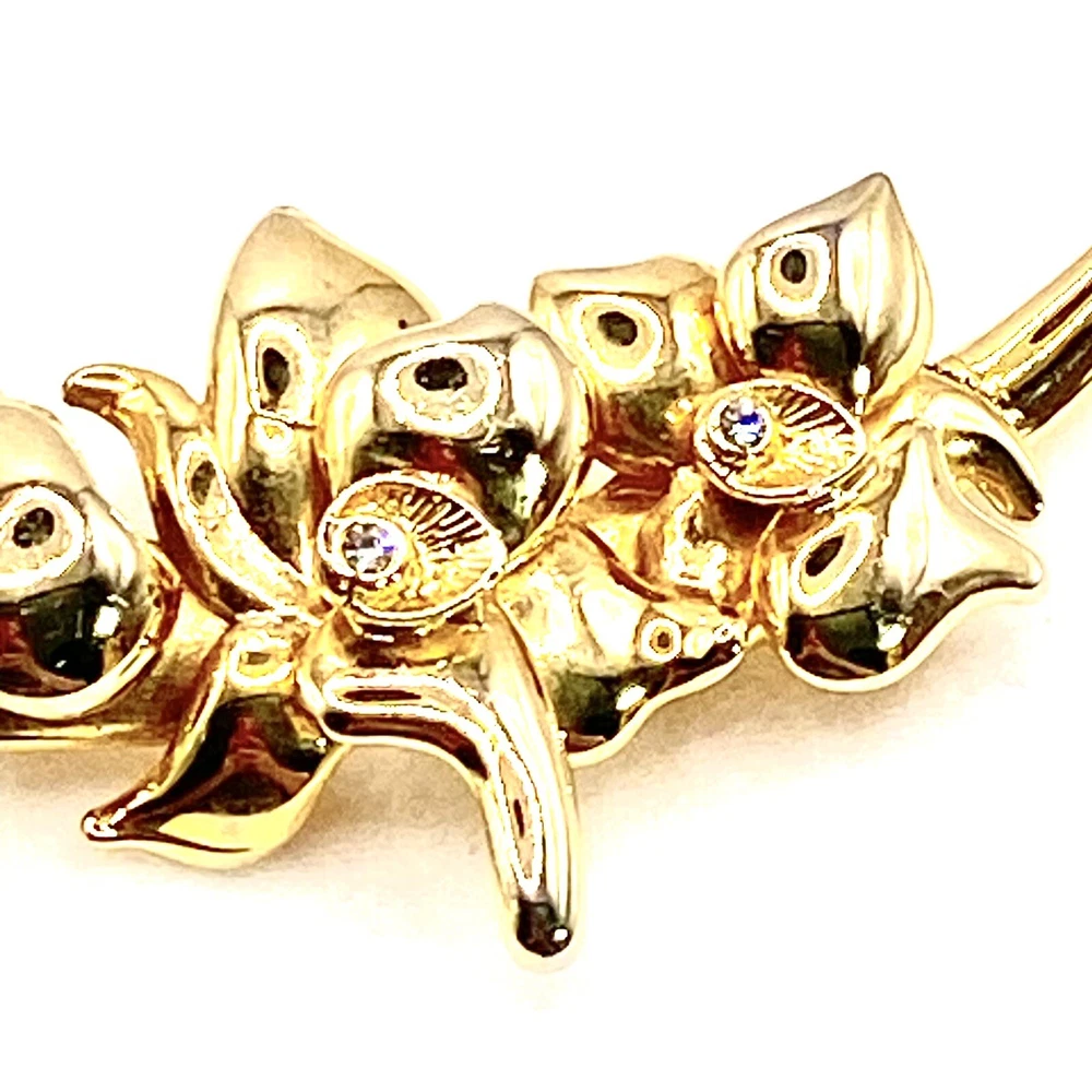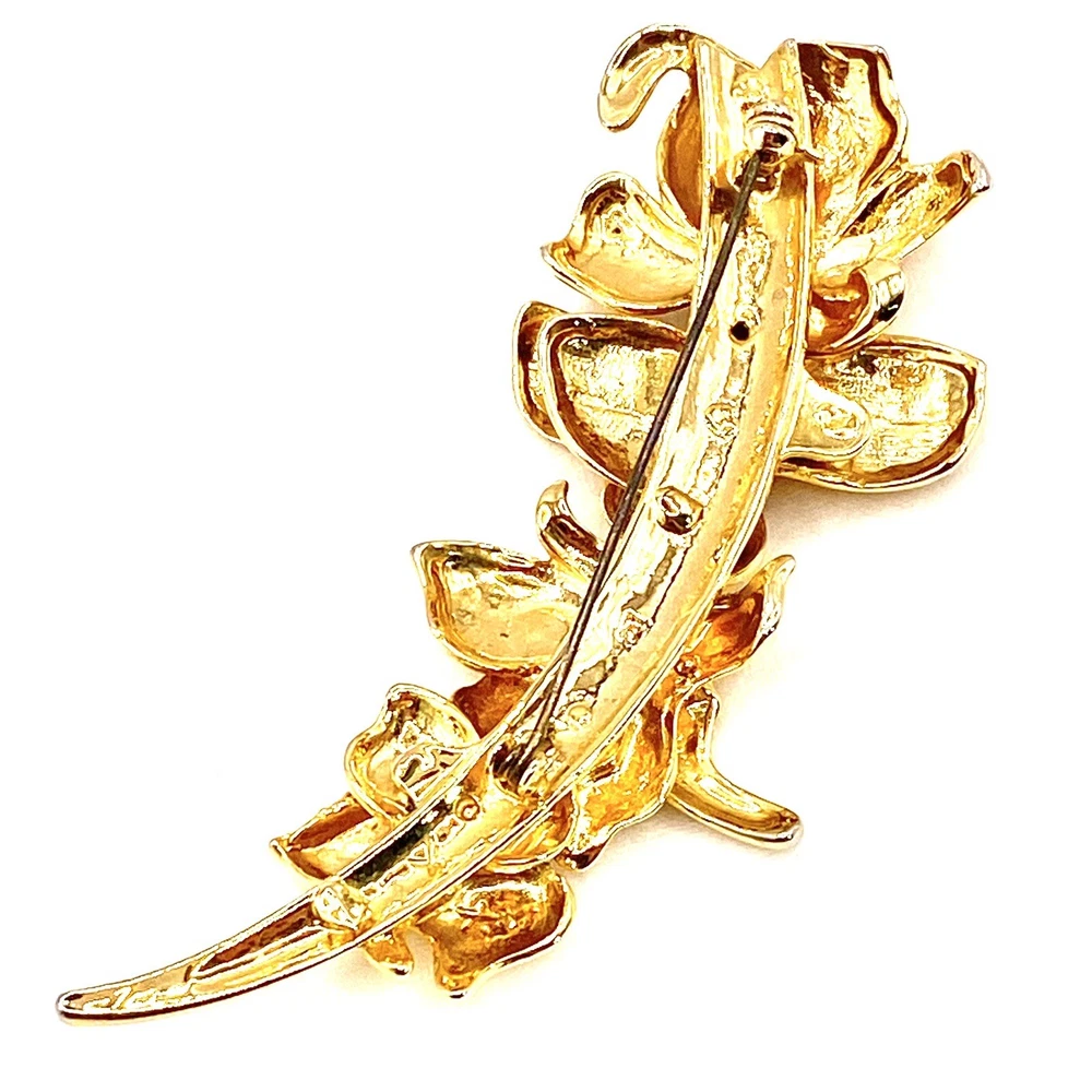 This vintage Estate brooch is a stunning piece of jewelry that will make a statement in any collection. The intricate design features delicate flowers and lilies, with sparkling crystals that catch the light beautifully. Measuring at 4 inches in length, this brooch is perfect for any occasion, whether it be a special event like a wedding or graduation, or an everyday accessory. The piece is made of gold-tone metal and has a beautiful brilliance cut to the crystals. The brooch is eye-clean and has excellent cut grade. The Estate brooch is a perfect addition to any fashion jewelry collection and is sure to impress. This brooch is in excellent condition! This is a pre-owned piece. It may cleaning. There may be scratching, chips, normal weavr, missing stones, etc… See Photos. If you have any questions, please feel free to contact me via eBay messaging. Thank you for stopping by. Make sure to check out other items in my store. Your satisfaction is my priority! Have a wonderfully blessed day!. Your satisfaction is my priority! Have a wonderfully blessed day!
