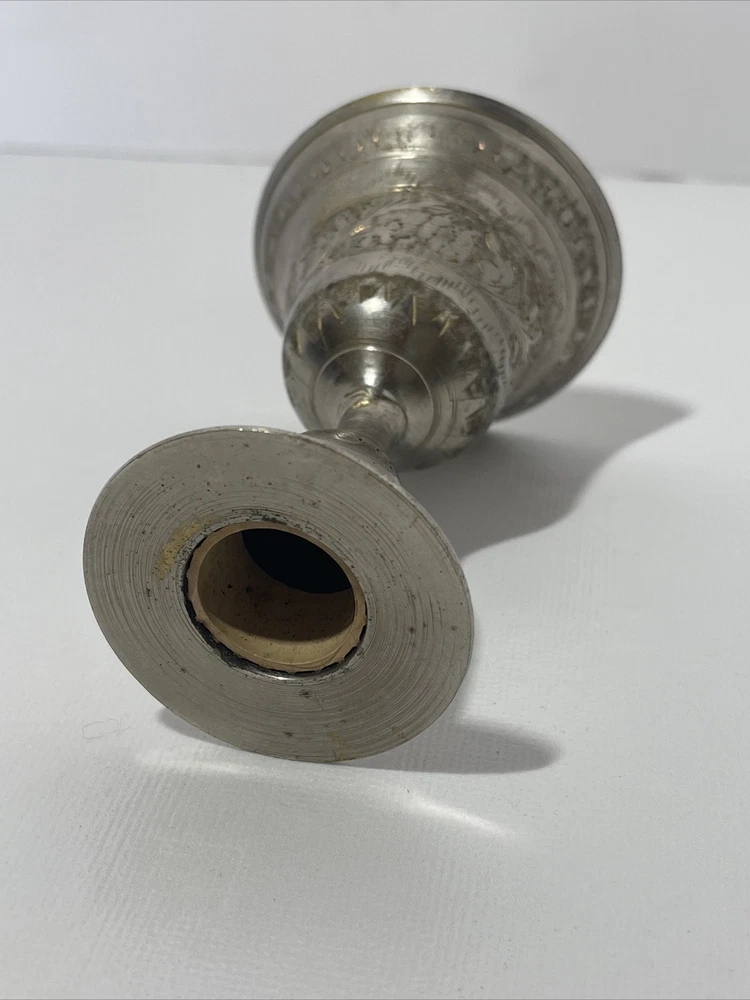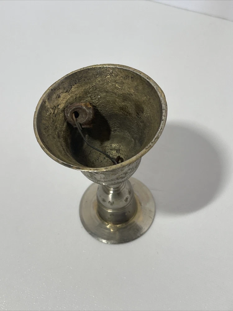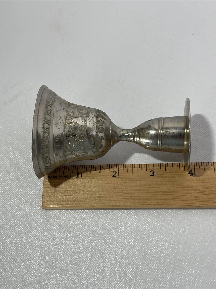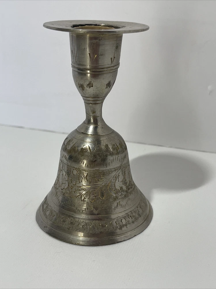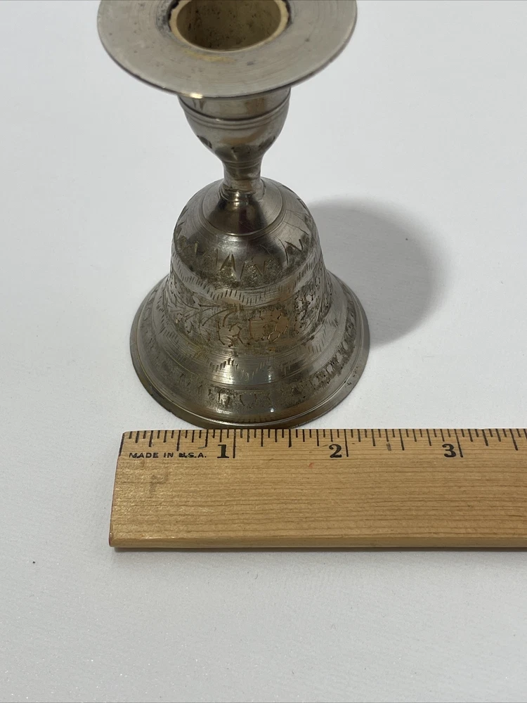 Vintage Etched Bell Candle Holder Silver Brass India? 3.75" Tall Boho Hippie