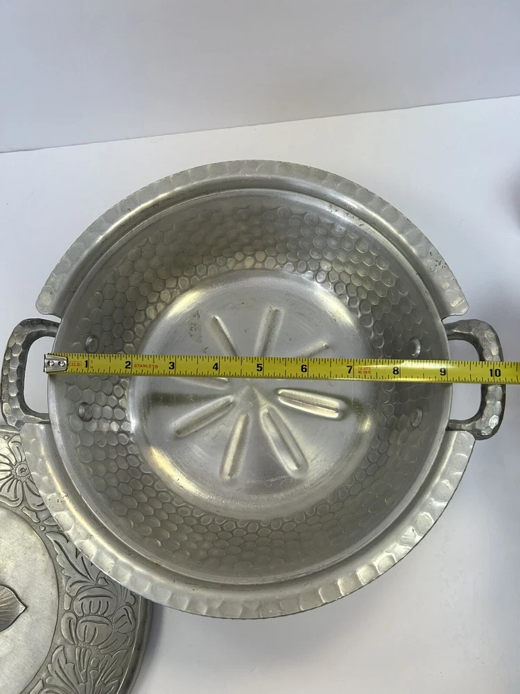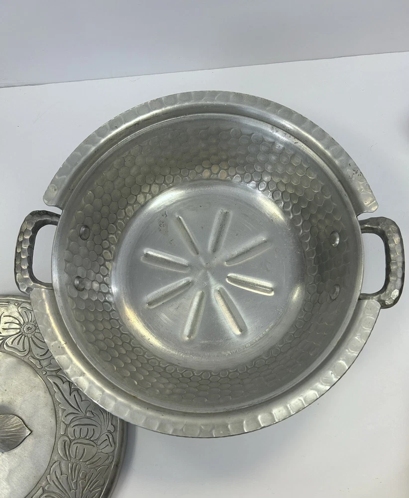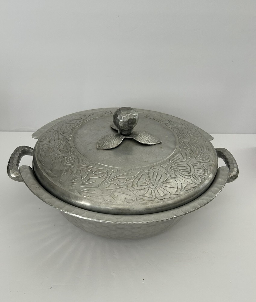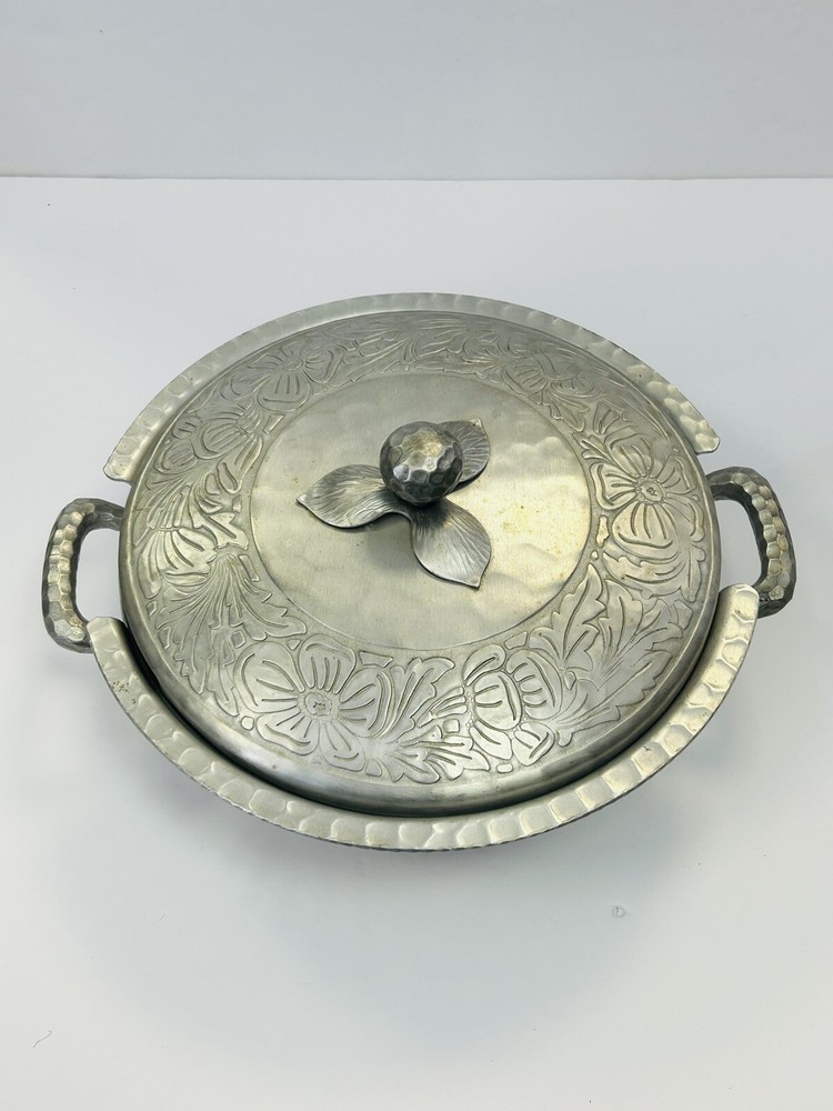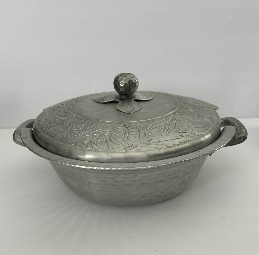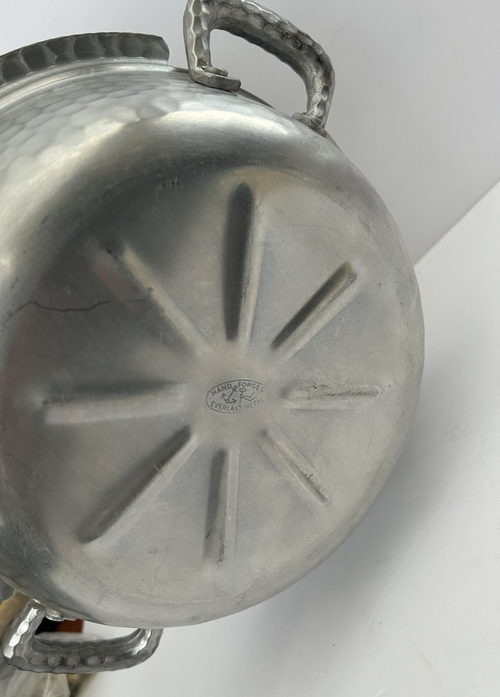 Vintage Everlast Covered Casserole Hand Forged Hammered ALUMINUM Floral Leaf Please see photos to you condition, and measurements. This is a beautifully crafted, artistic piece of serveware. Great for the holidays. zoom into the photos to view the design details We don’t accept returns, so please take your time deciding on your purchase. Thank you for your support of this small shop!