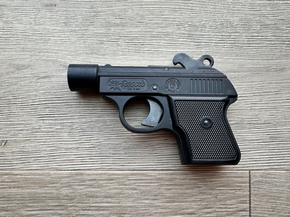 Excellent condition, The Record Weinberg 6mm Signal Pistol, a compact, single-shot launcher designed in Germany. It is commonly used as a starter pistol for sporting events, for wildlife control, or as a signal and animal deterrent device during outdoor activities. Key Specifications and Features Model Name: Record Weinberg (sometimes referred to as the "Bird Bomb" shooter). Caliber: 6mm (.22 blank) crimped cartridges. Function: It utilizes the energy from a 6mm blank to launch 15mm pyrotechnic projectiles, such as signal flares, whistle cartridges, or explosive "bird bombs". Design: It features a single-shot mechanism with a plastic grip and a 15mm launcher cup integrated into or attached to the barrel. Markings: The pistol is marked with "FB Record," "Cal. 6mm," and "Weinberg u. Signal Pistole". It also bears the "PTB 113" mark, which is a German technical certification. Feel free to ask any questions about the item. You may have. Please see the photos for your best judgment. The item pictured is the one you will receive.